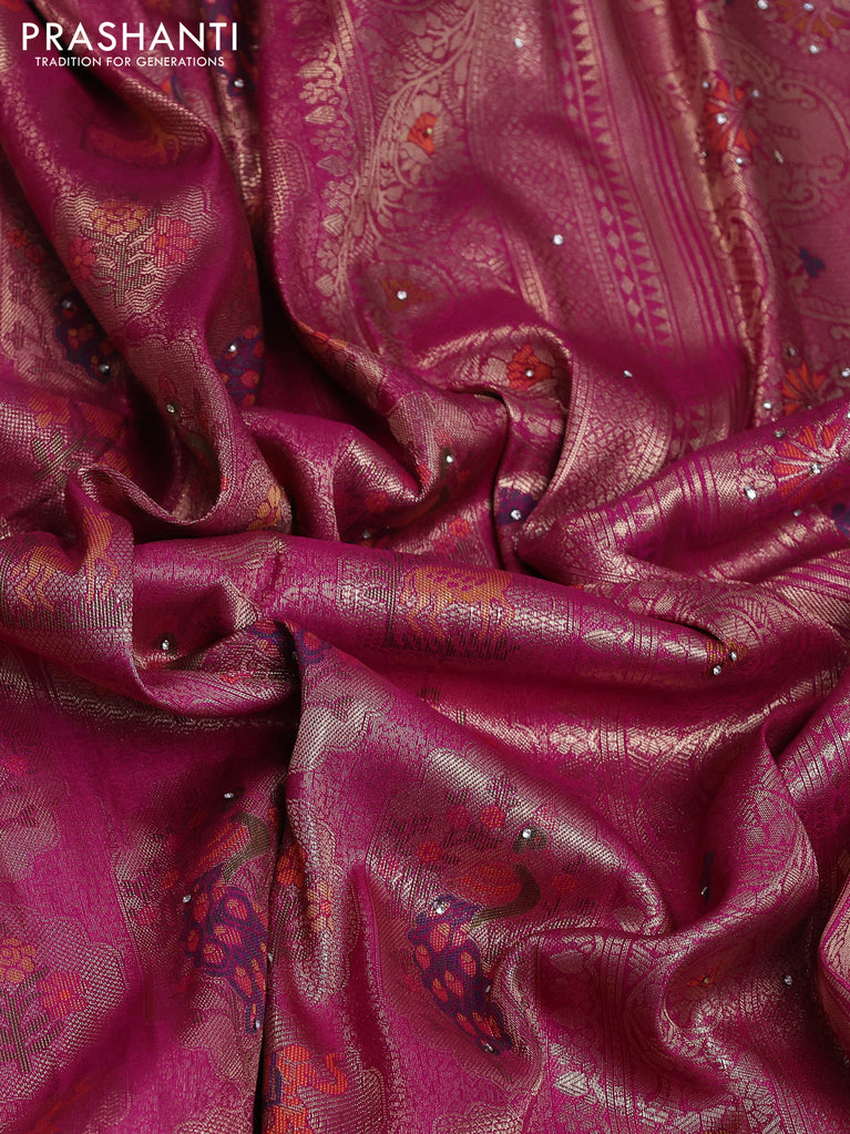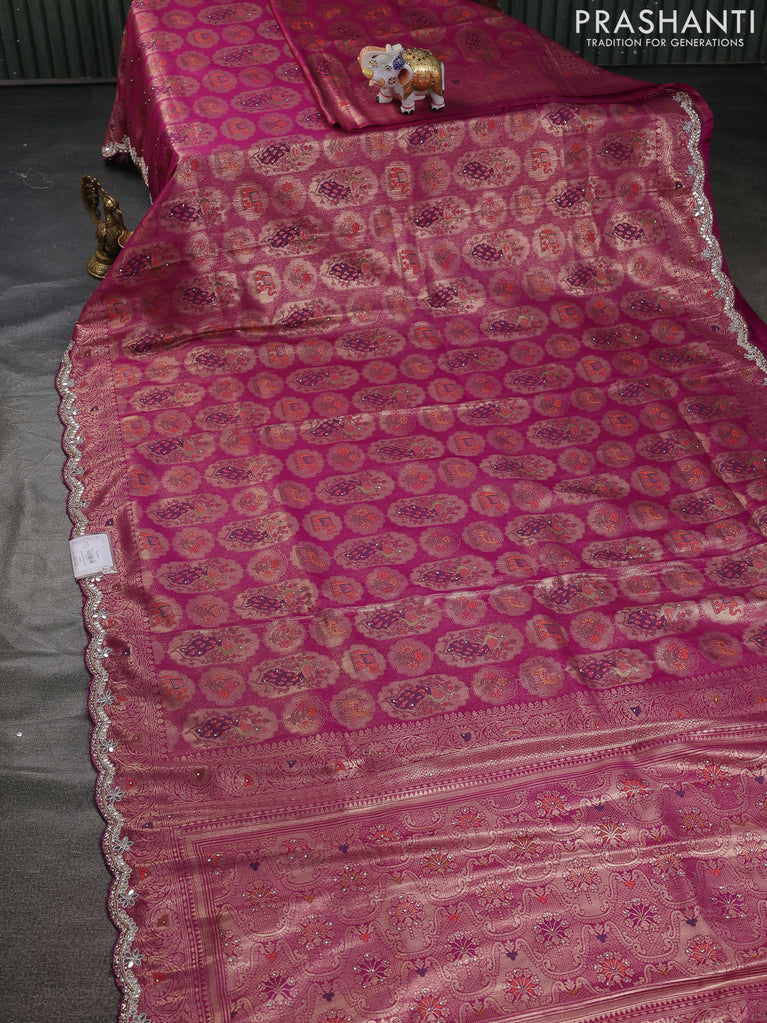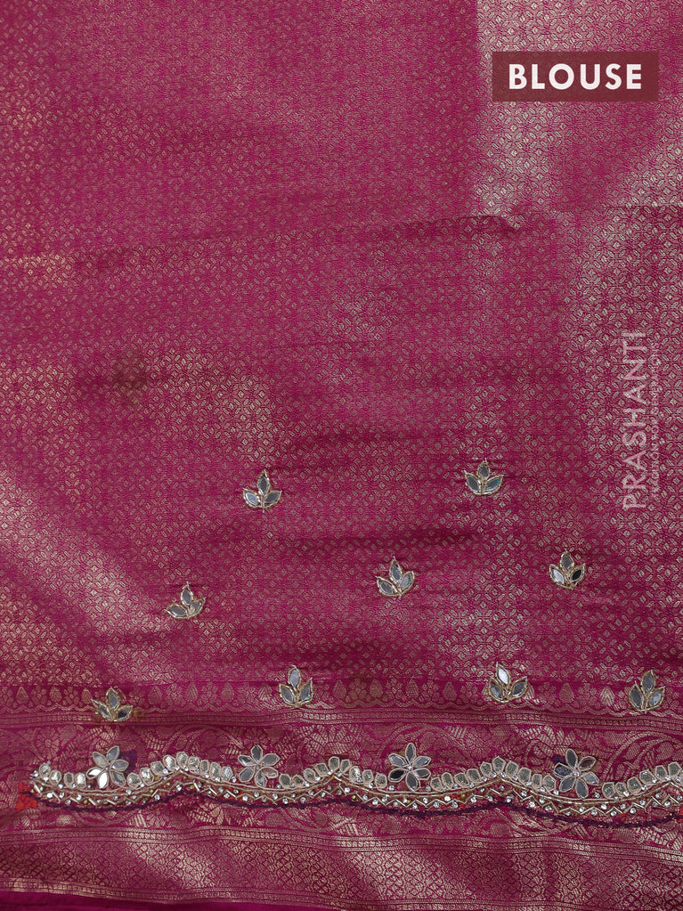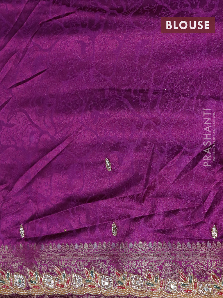 Banarasi silk saree violet with allover zari woven brocade weaves and zaridosi gotapatti work border