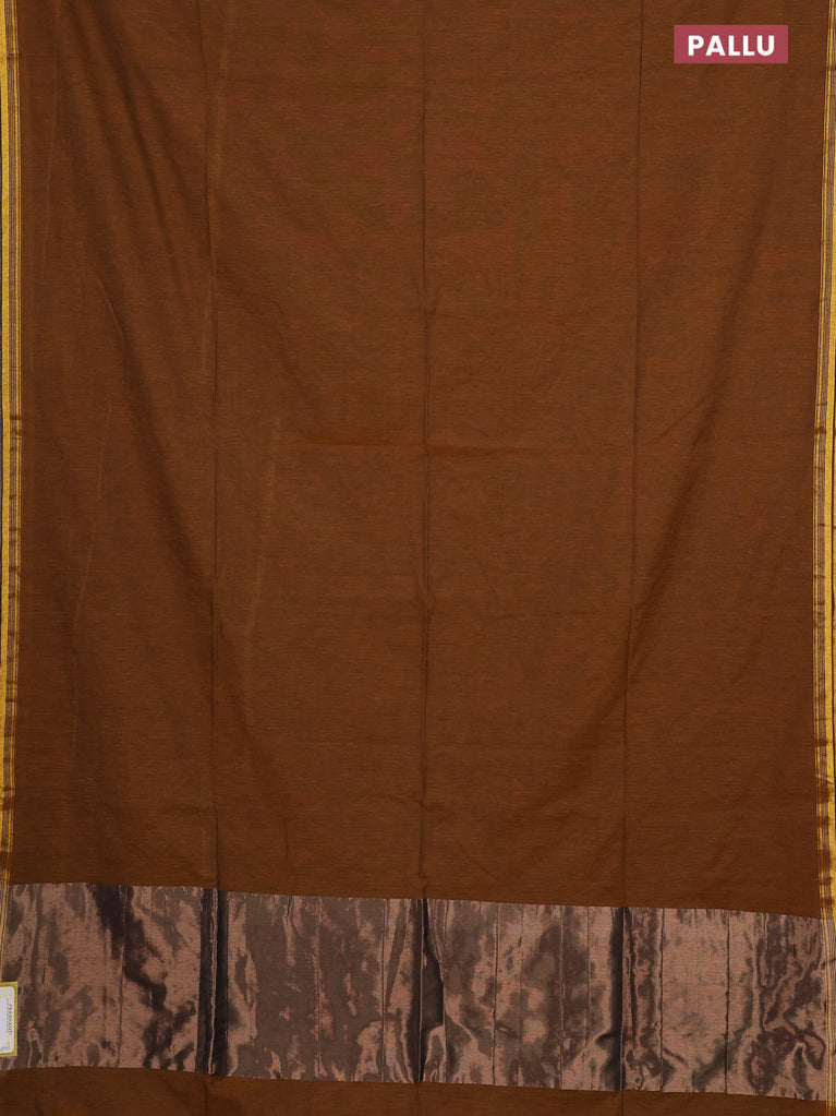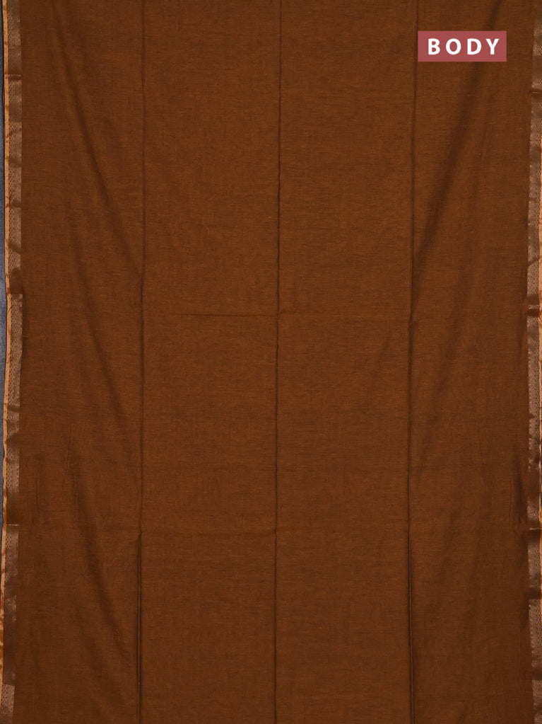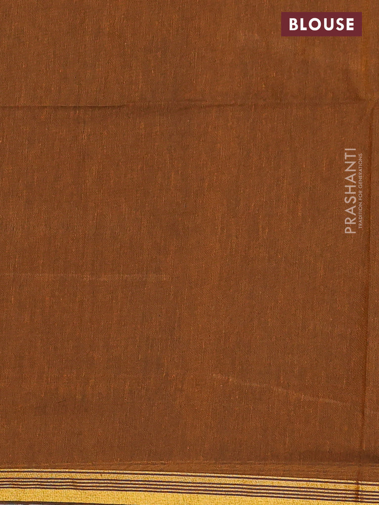 Bengal soft cotton saree dark mustard with plain body and zari woven piping border