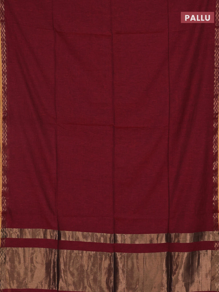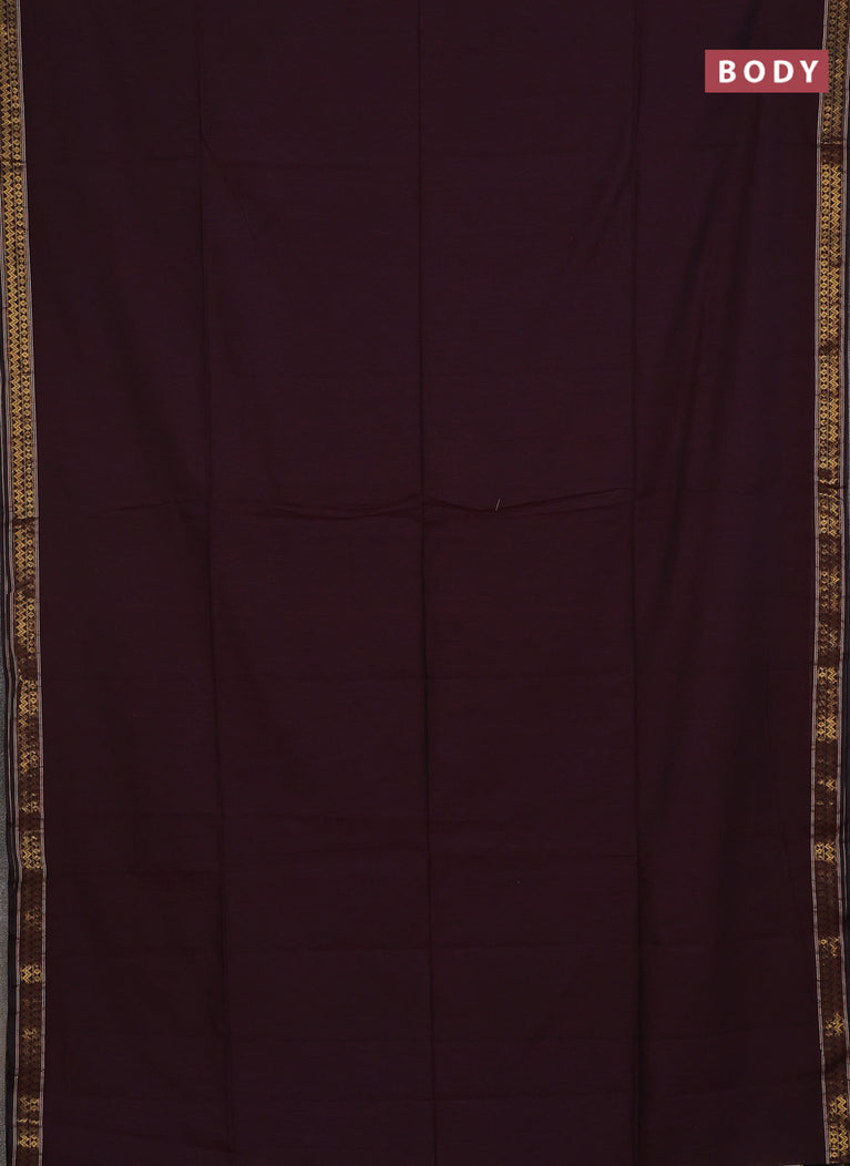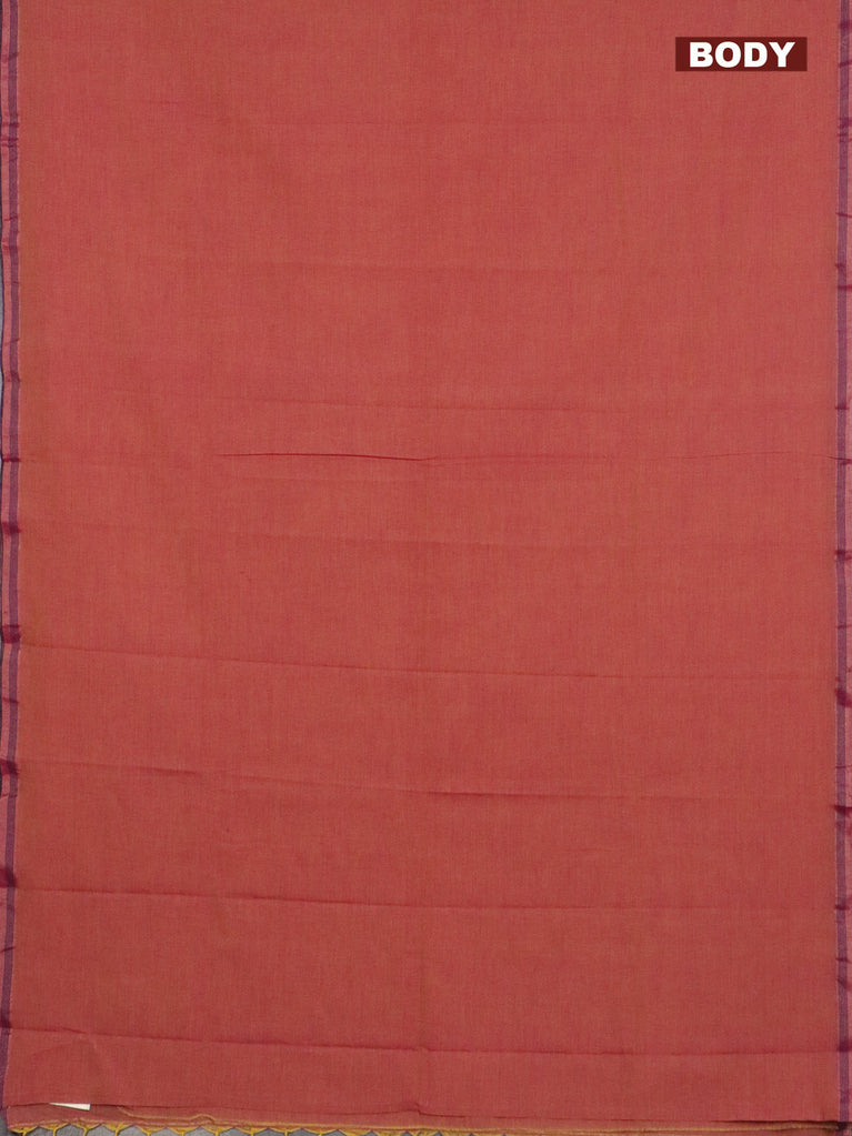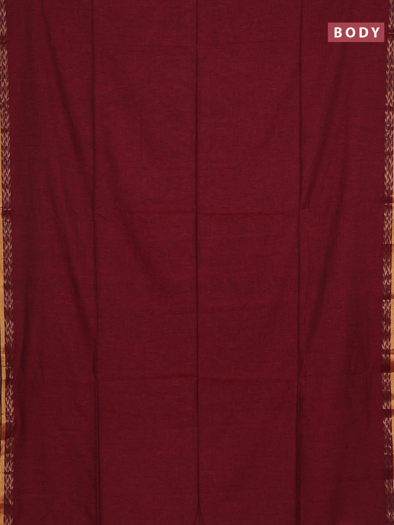 Bengal soft cotton saree dark mustard and deep maroon with plain body and zari woven border