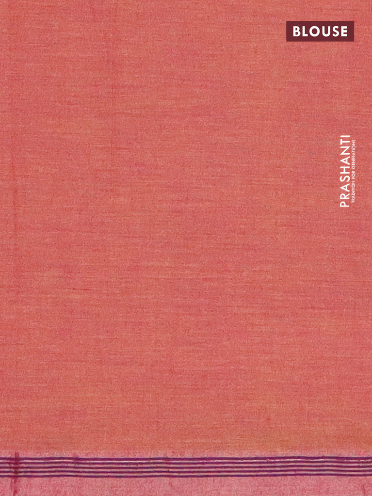 Bengal soft cotton saree dual shade of pinkish yellow with plain body and zari woven border