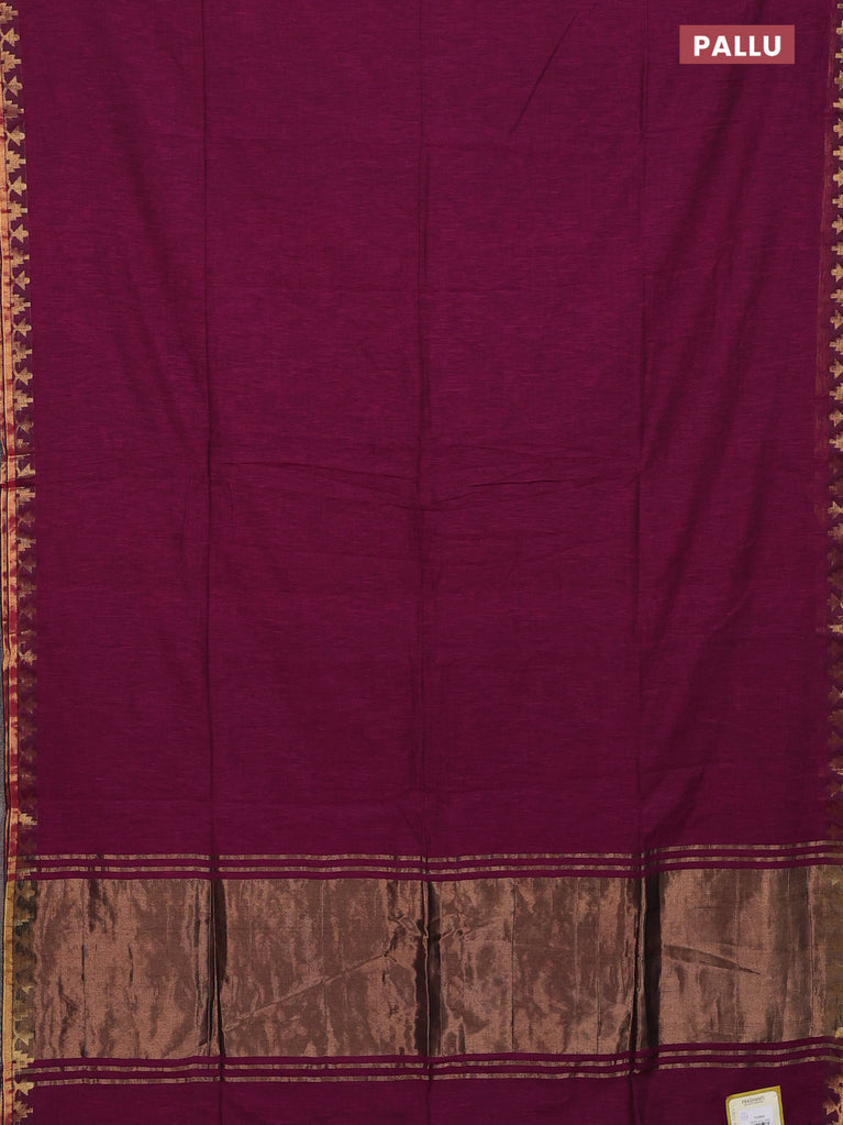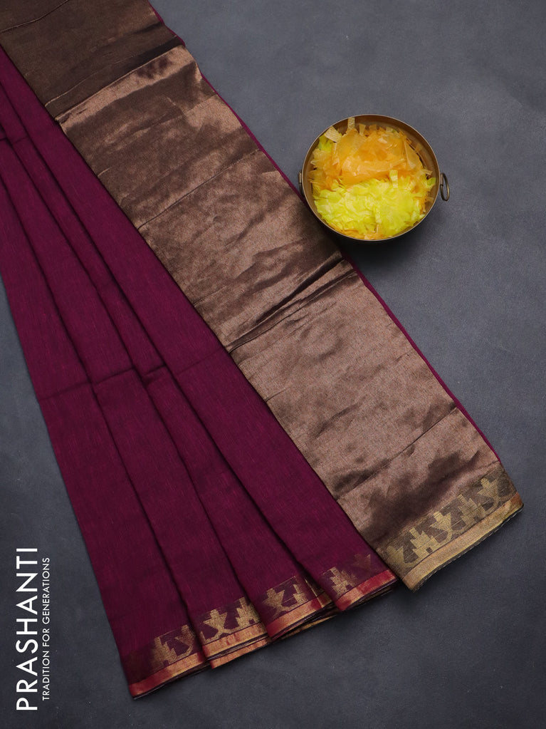 Bengal soft cotton saree dark magenta pink with plain body and zari woven border