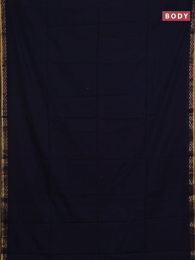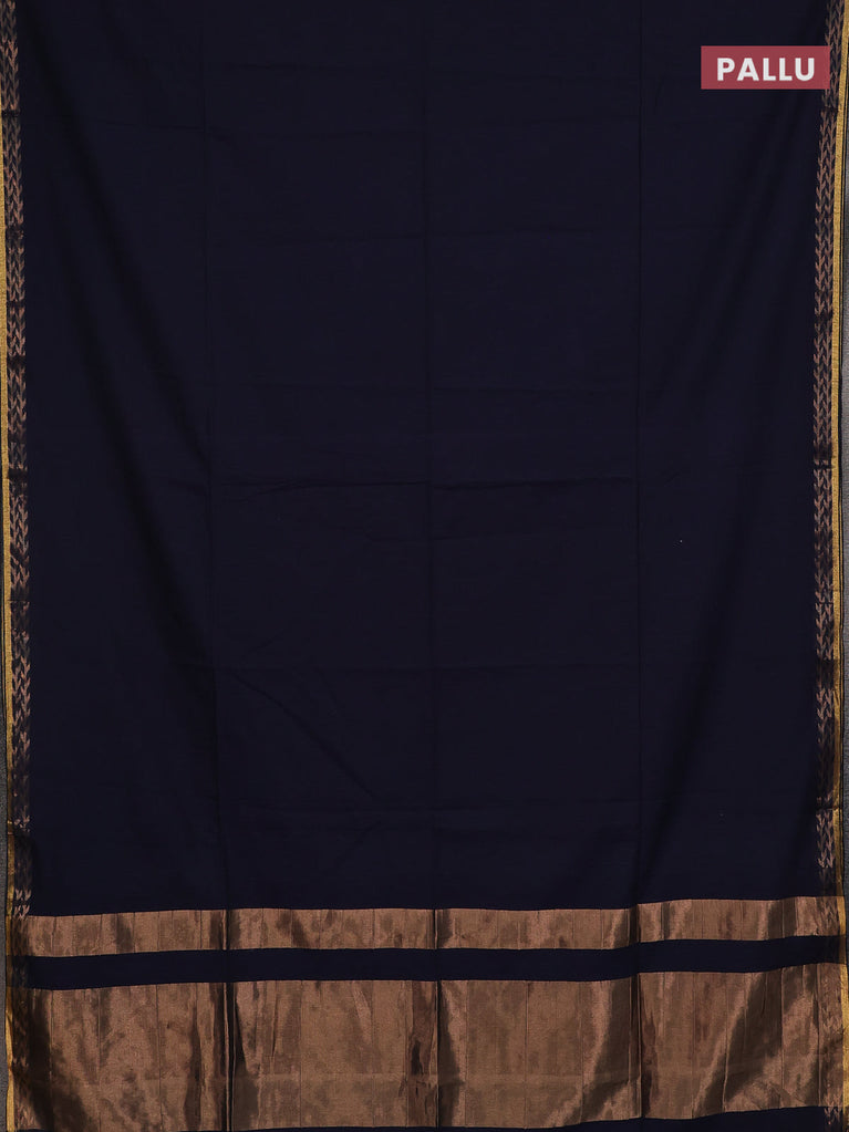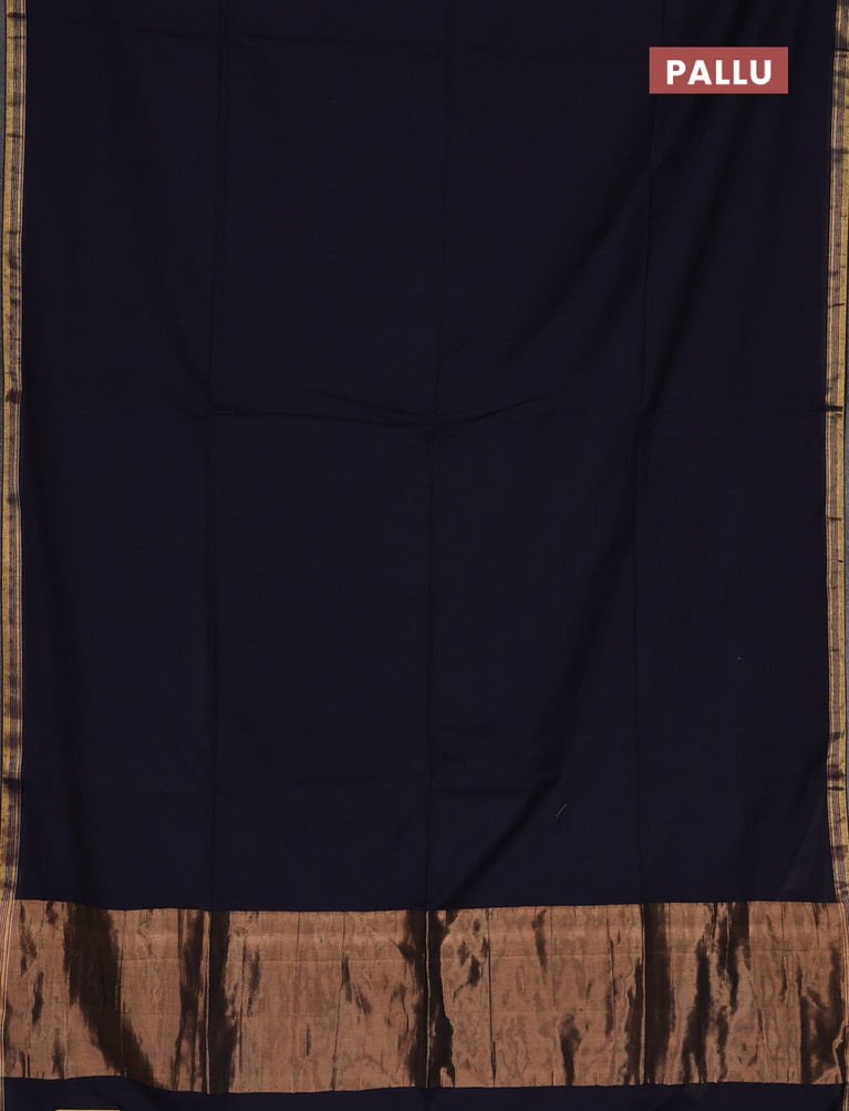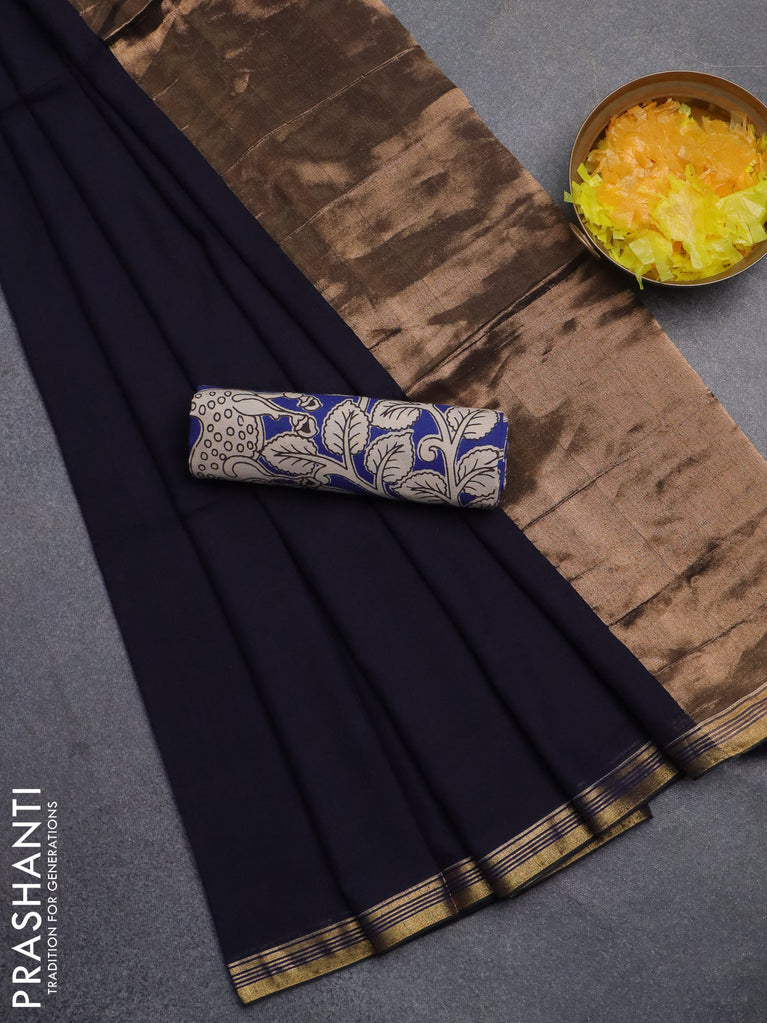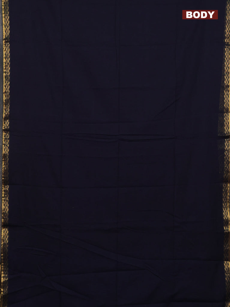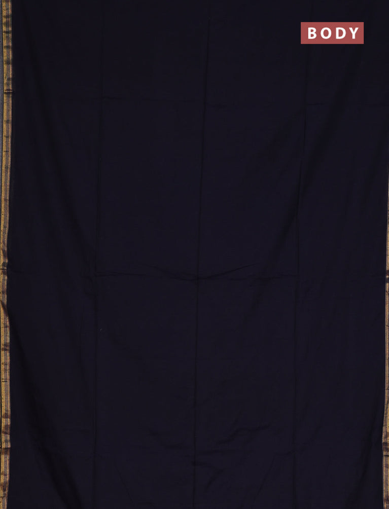 Bengal soft cotton saree deep navy blue and dark mustard with plain body and zari woven border