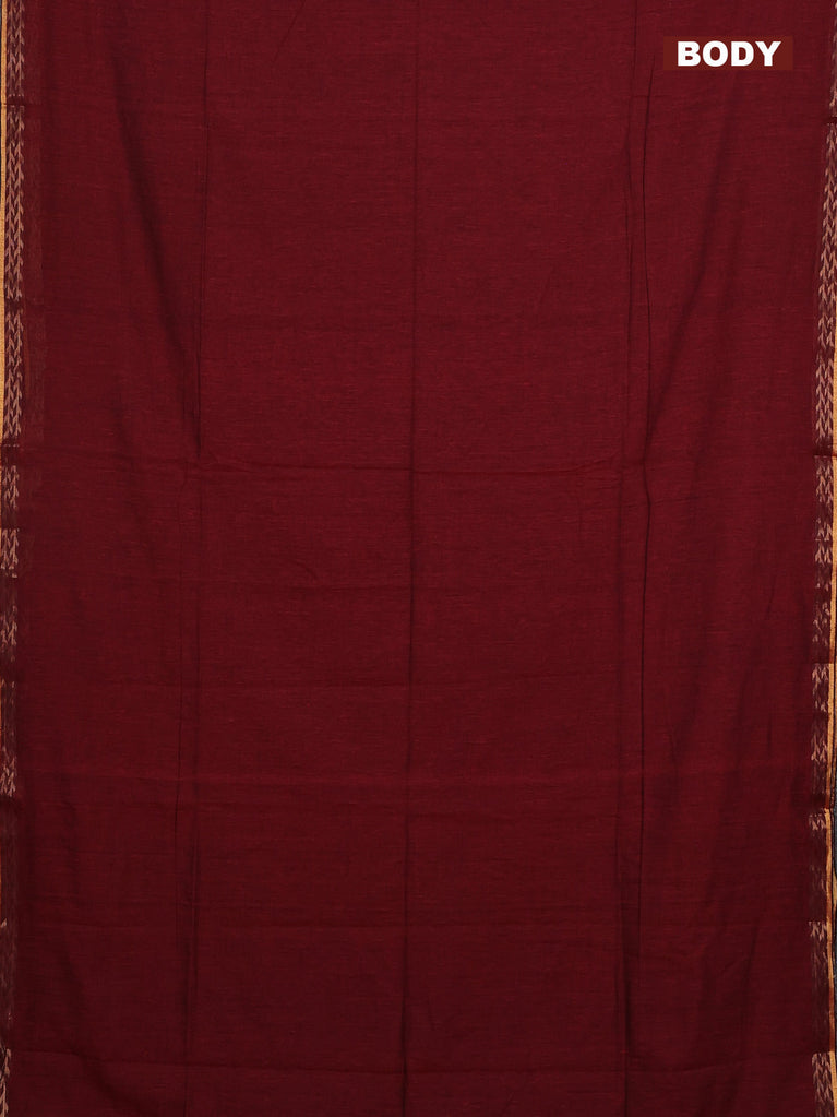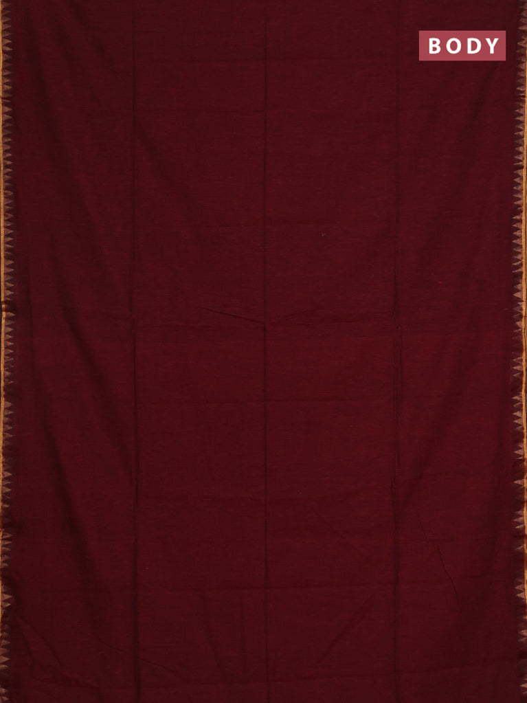 Bengal soft cotton saree maroon and yellow with plain body and zari woven border