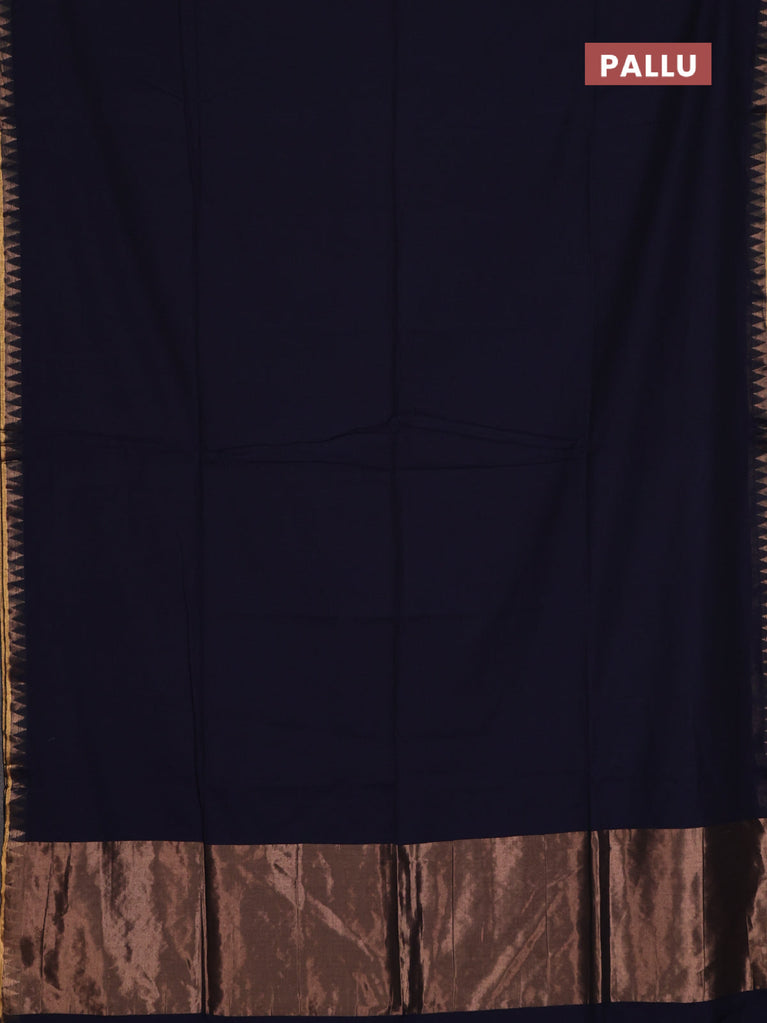 Bengal soft cotton saree navy blue and brown with plain body and zari woven border