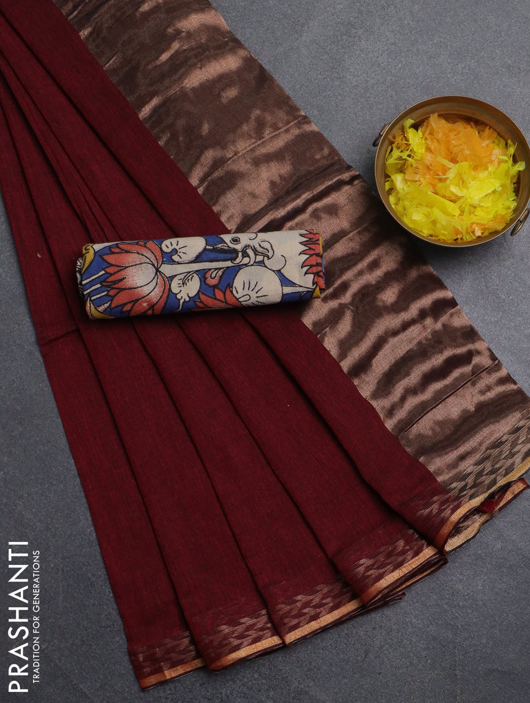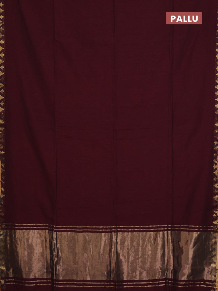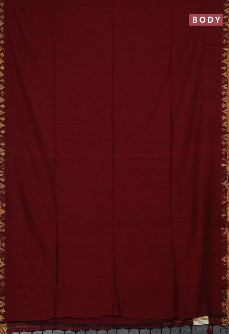 Bengal soft cotton saree maroon with plain body and zari woven piping border