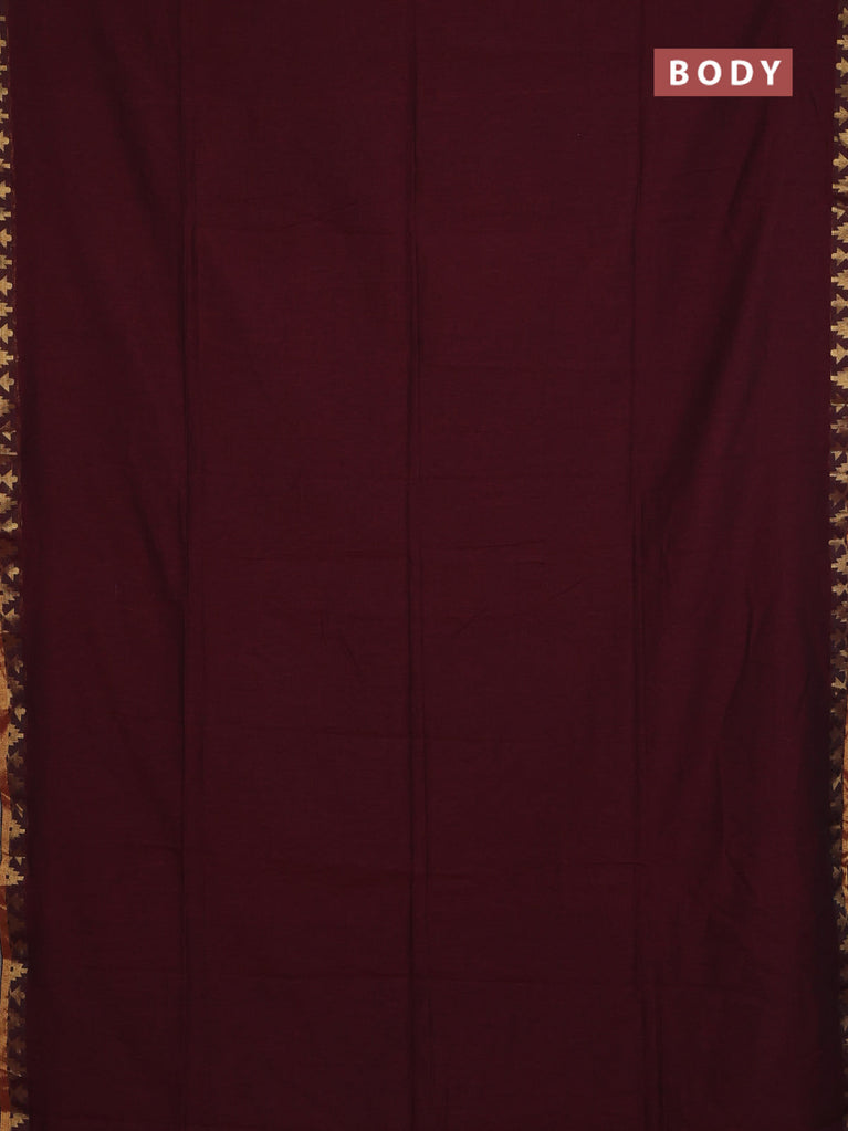 Bengal soft cotton saree maroon with plain body and zari woven border