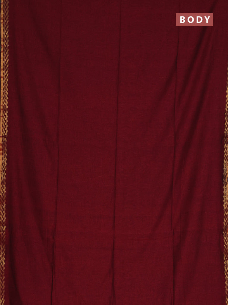 Bengal soft cotton saree maroon and mustard yellow with plain body and zari woven border