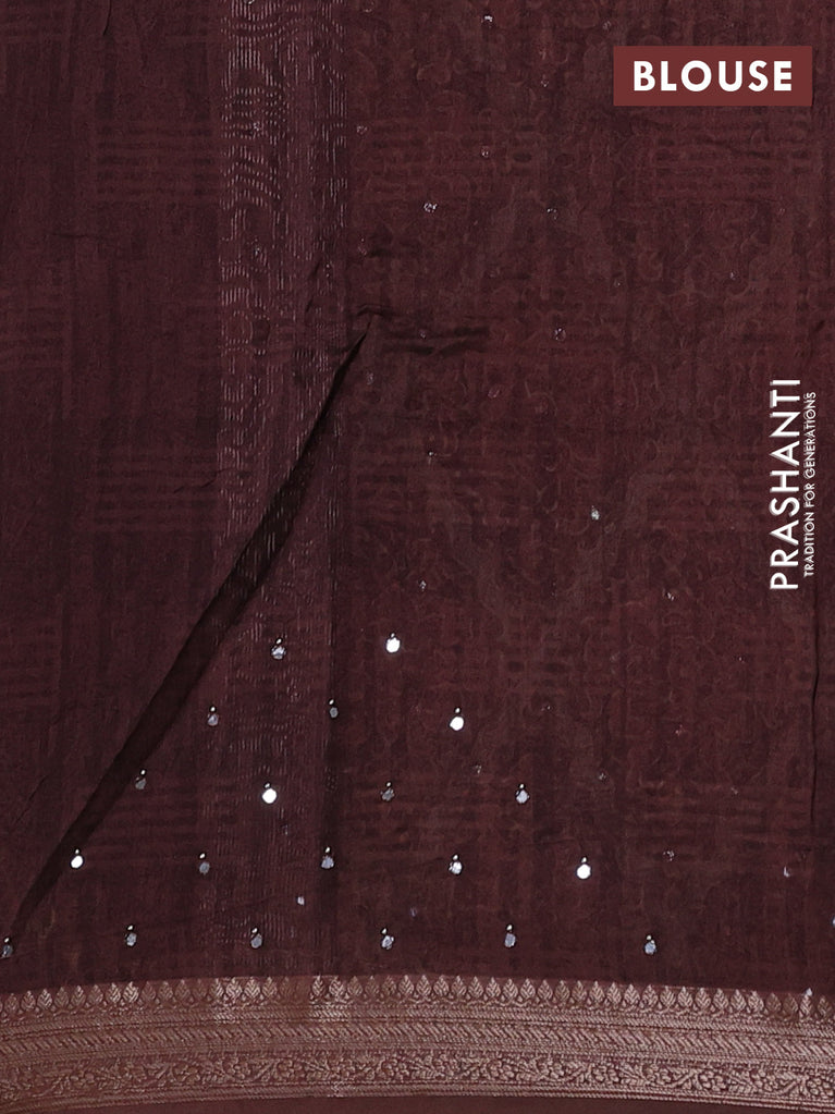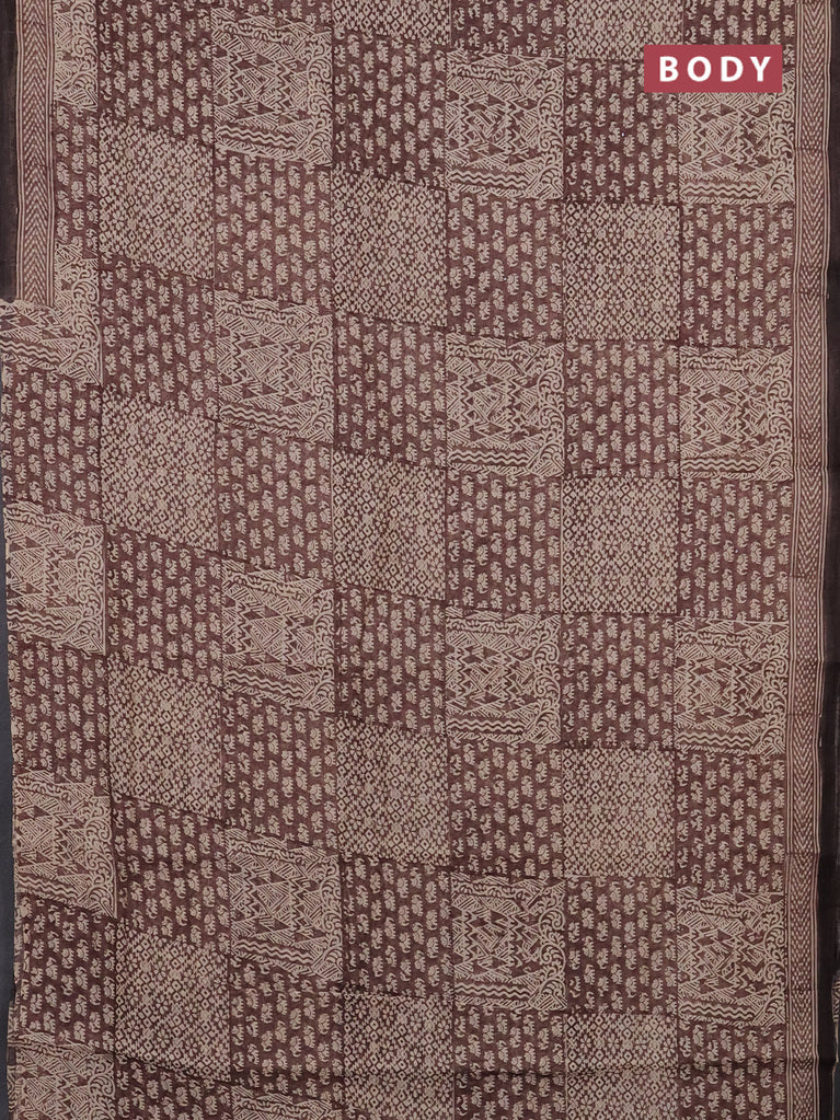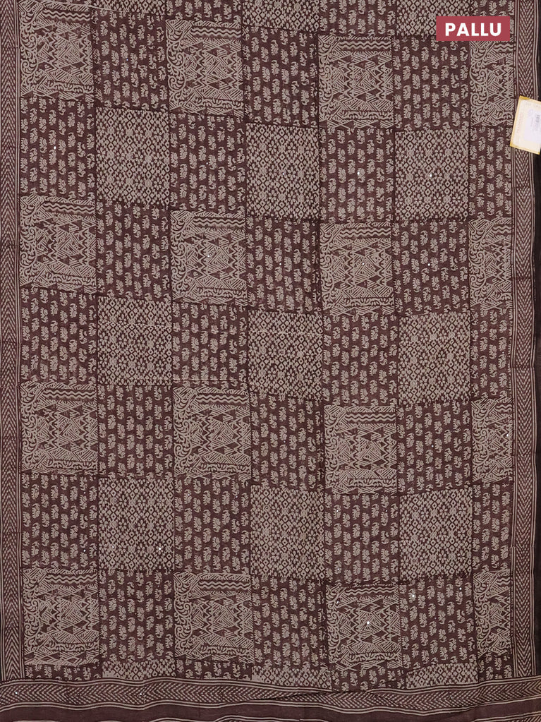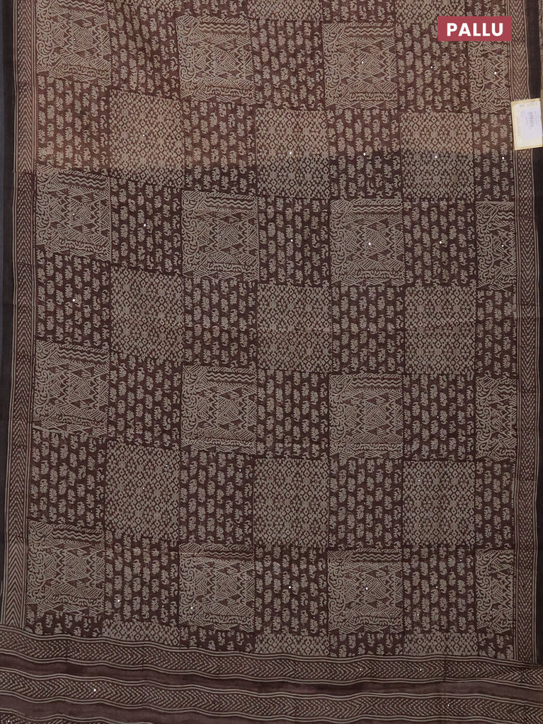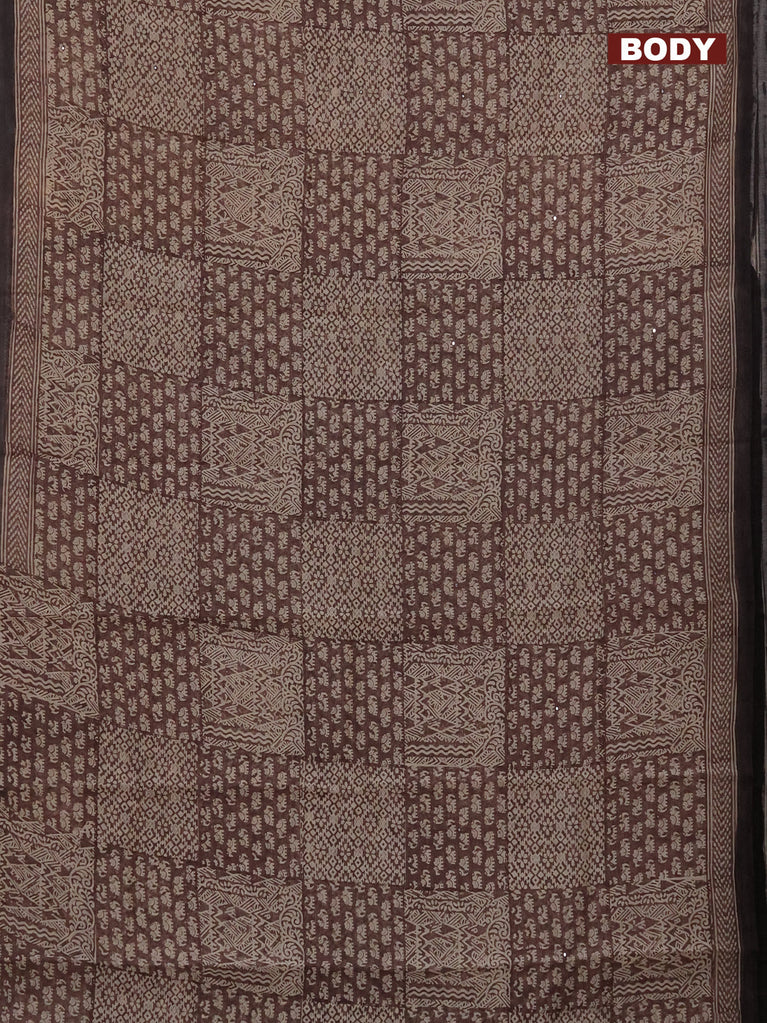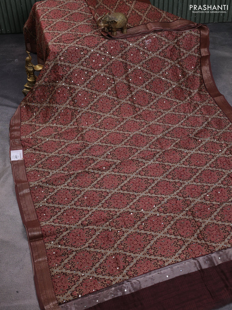 Chanderi silk cotton saree brown with allover prints & mirror work and woven border