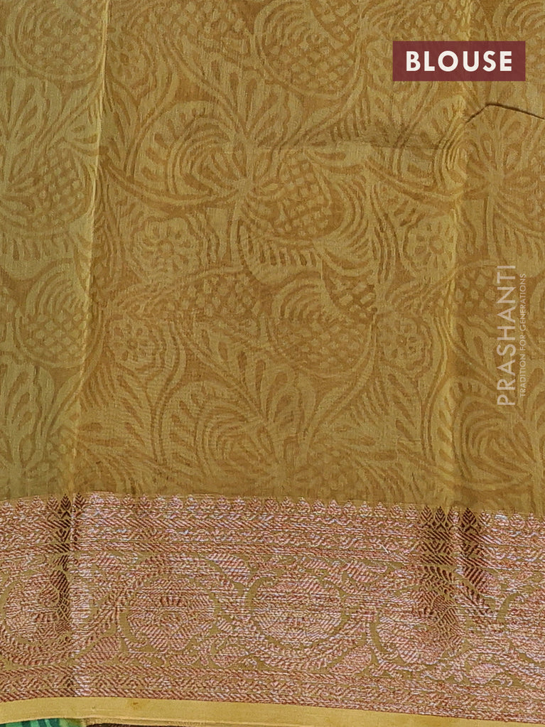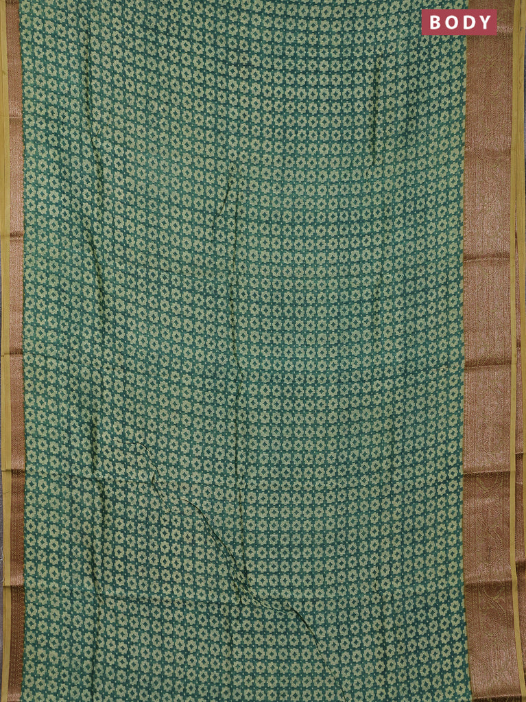 Chanderi silk cotton saree green and mustard green with allover prints and banarsi style border