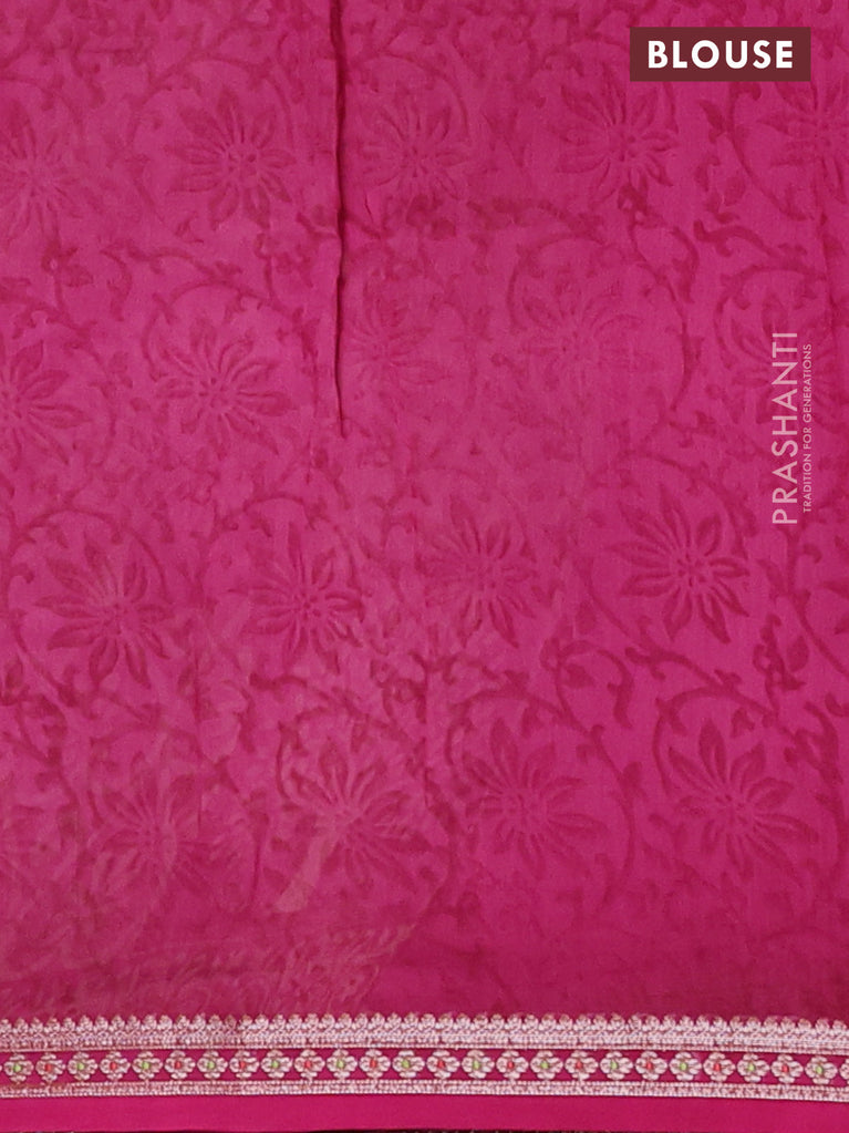 Chanderi silk cotton saree magenta pink with allover prints and banarasi style border