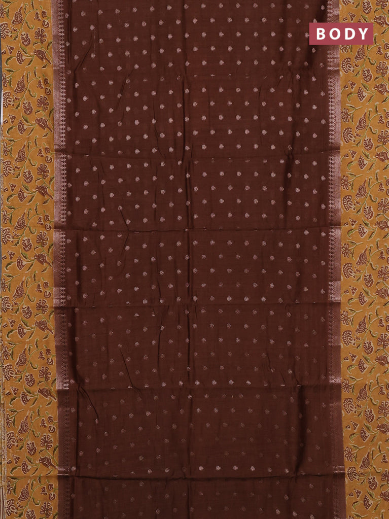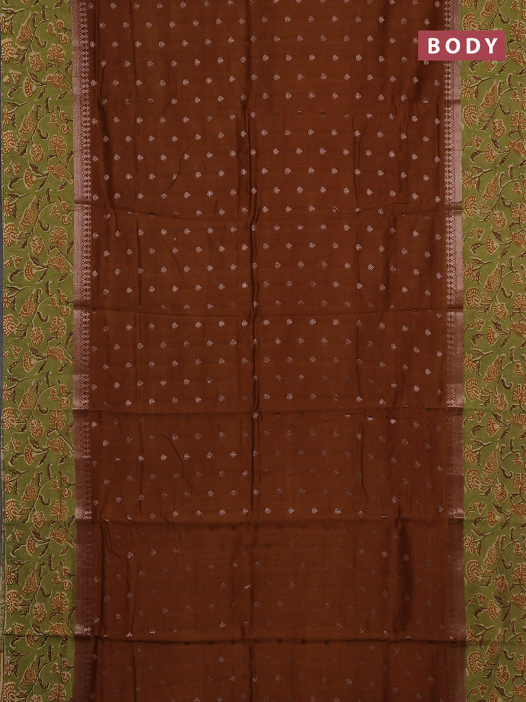 Chanderi silk cotton saree brown and sandal with allover zari buttas and printed border