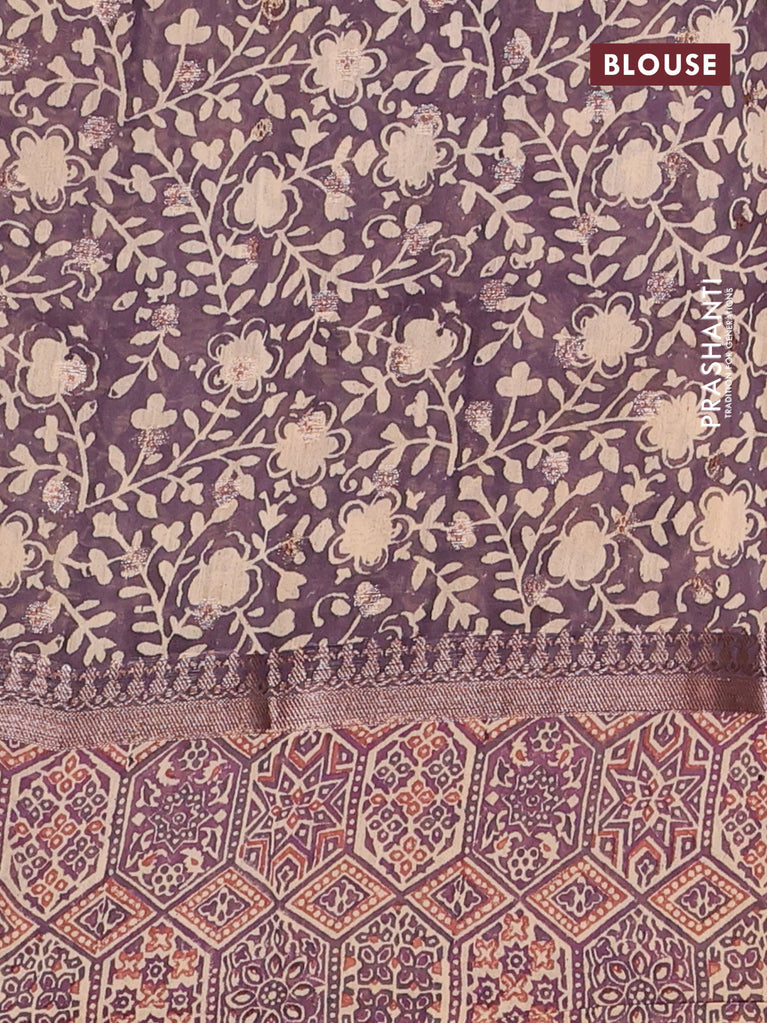 Chanderi silk cotton saree dark purple and beige with allover zari buttas and printed border