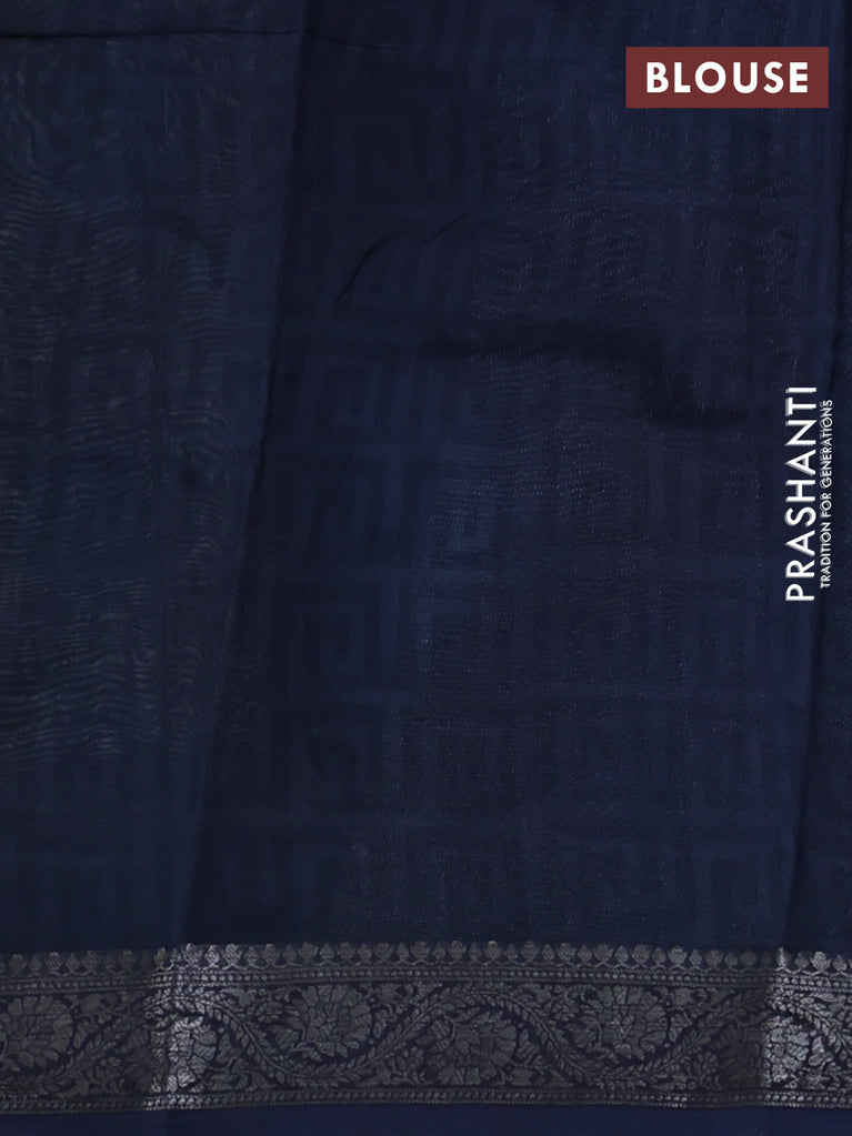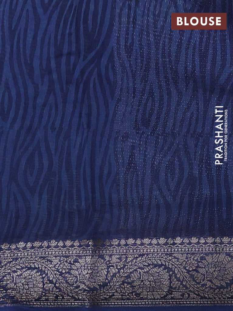 Chanderi silk cotton saree dark blue and beige with allover zig zag prints & mirror work and woven border