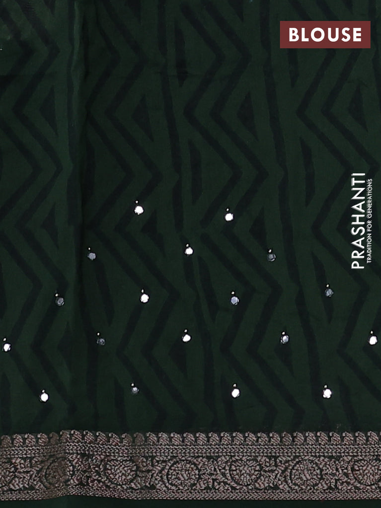 Chanderi silk cotton saree green with allover prints & mirror work and woven border