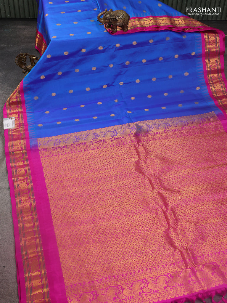 Pure gadwal silk saree blue and pink with zari woven buttas and temple design zari woven border