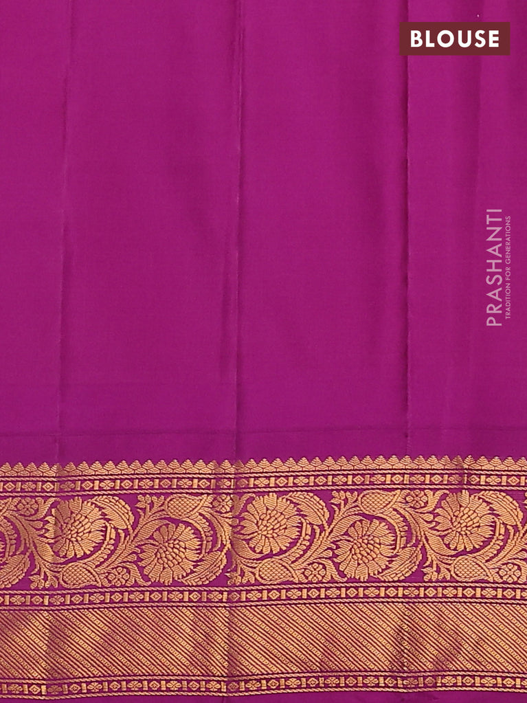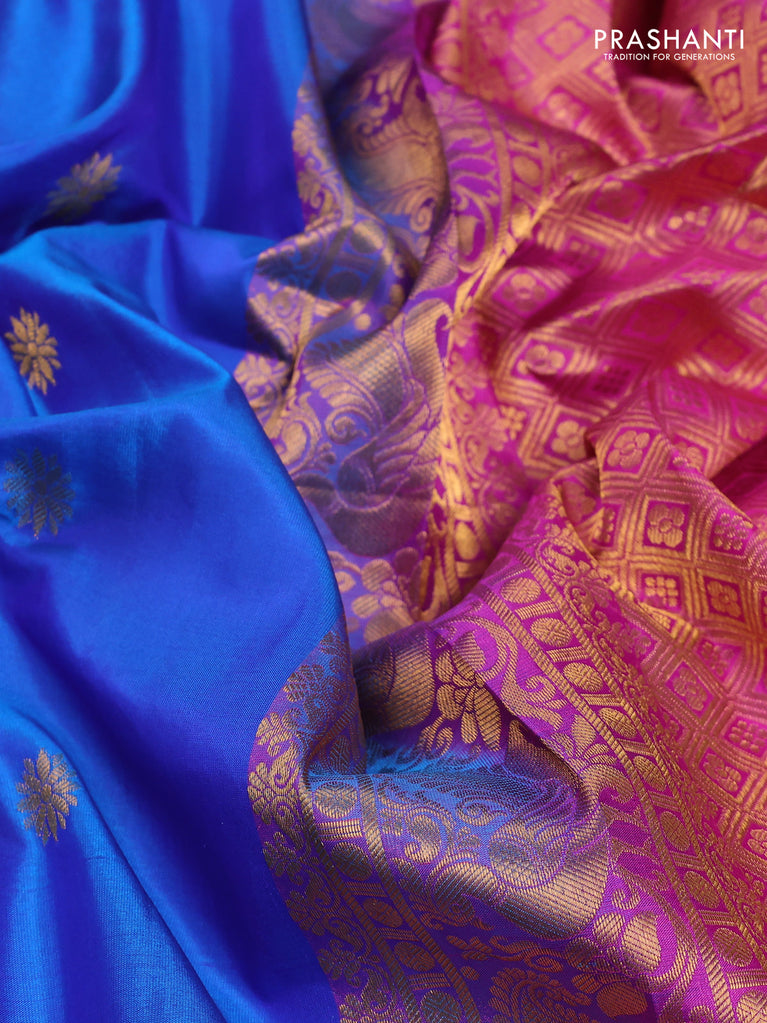 Pure gadwal silk saree cs blue and purple with zari woven buttas and temple design zari woven border