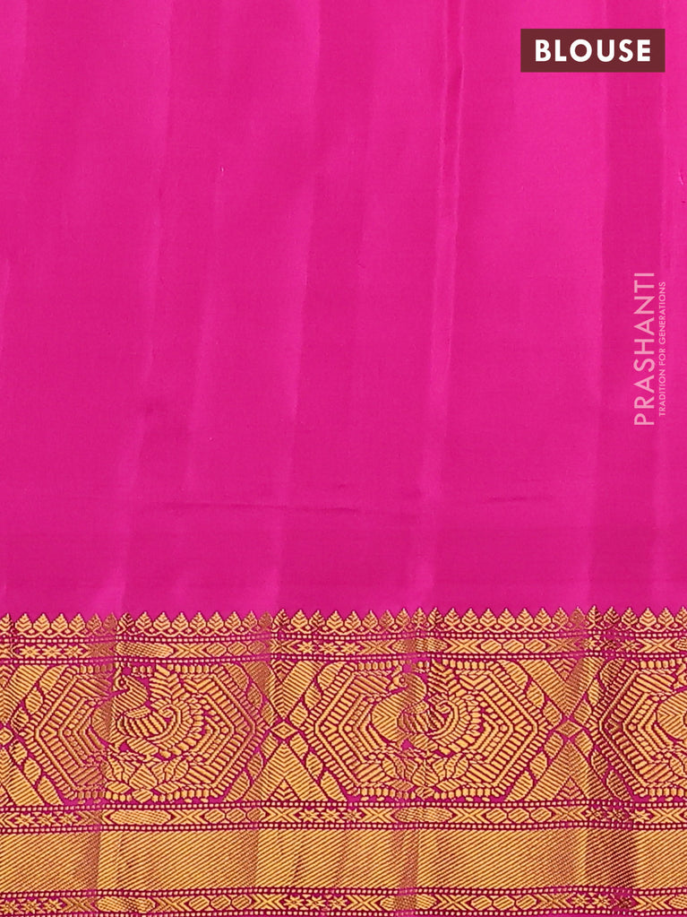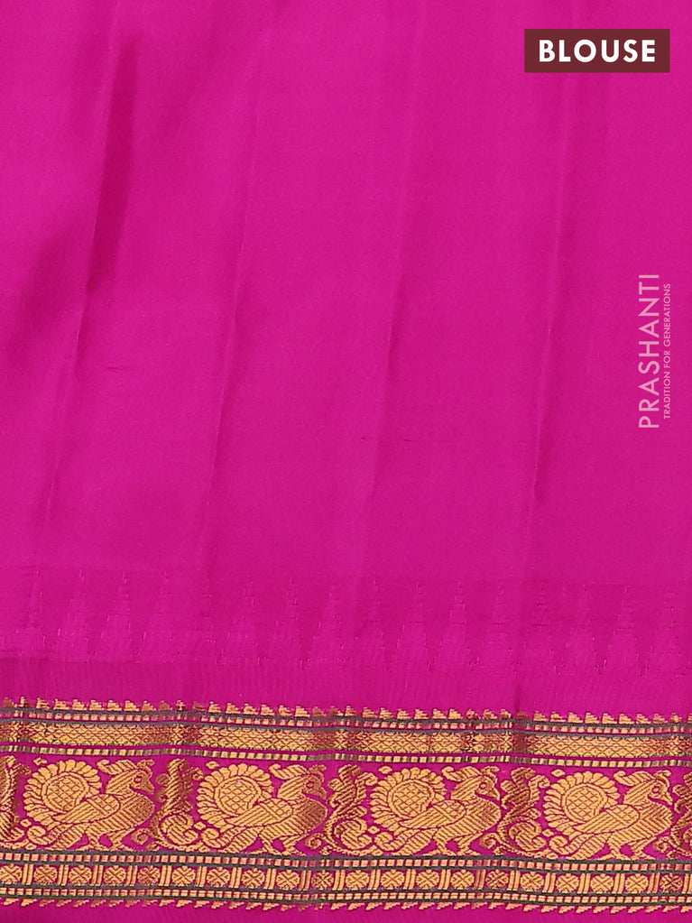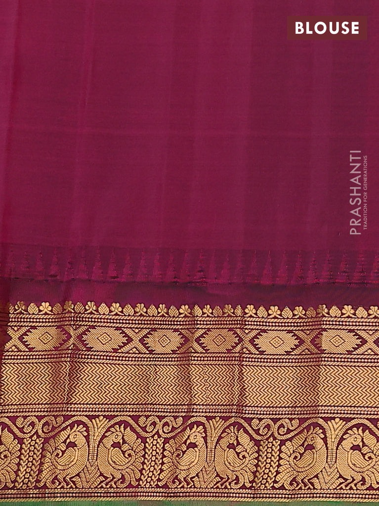 Pure gadwal silk saree light green and dark magenta pink with zari woven buttas and temple design zari woven border