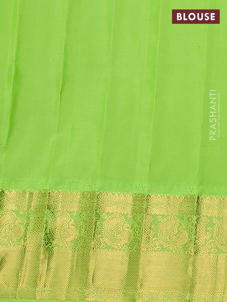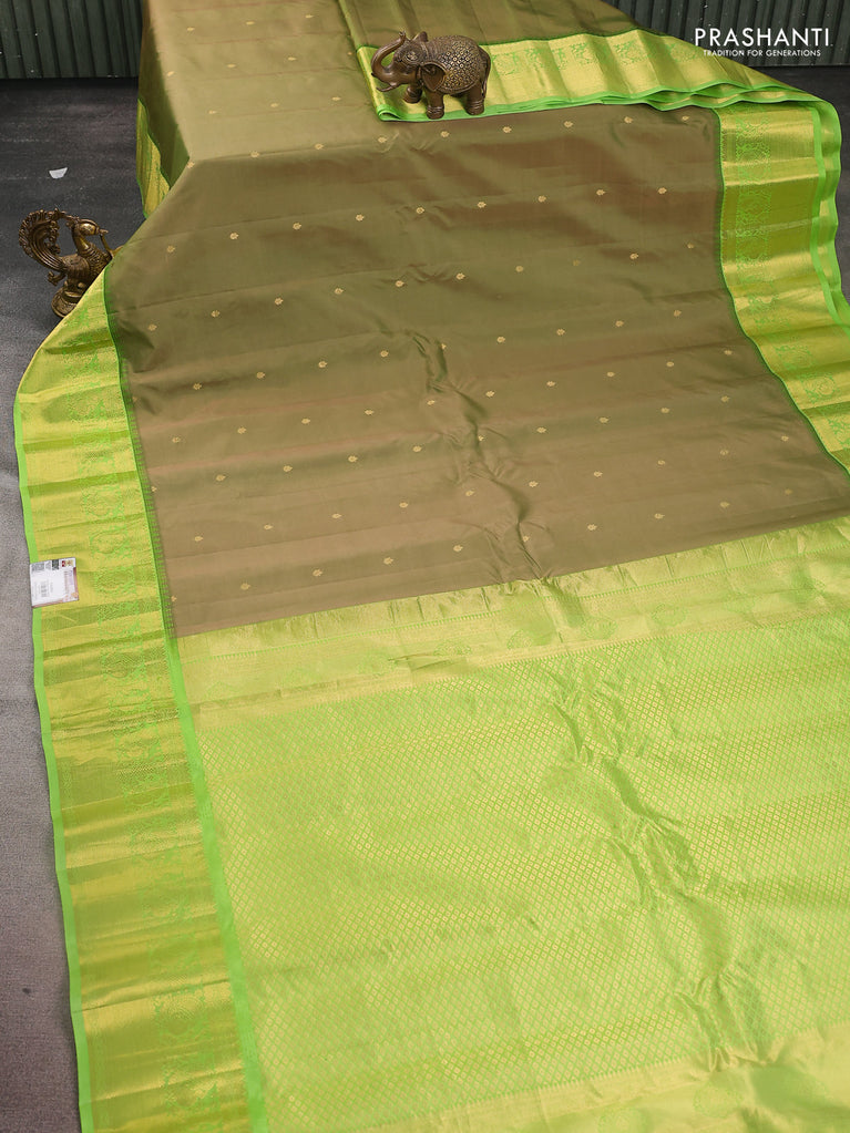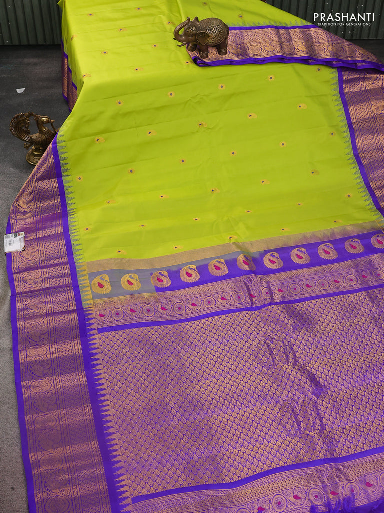 Pure gadwal silk saree dual shade of green and light green with zari woven buttas and temple design zari woven border