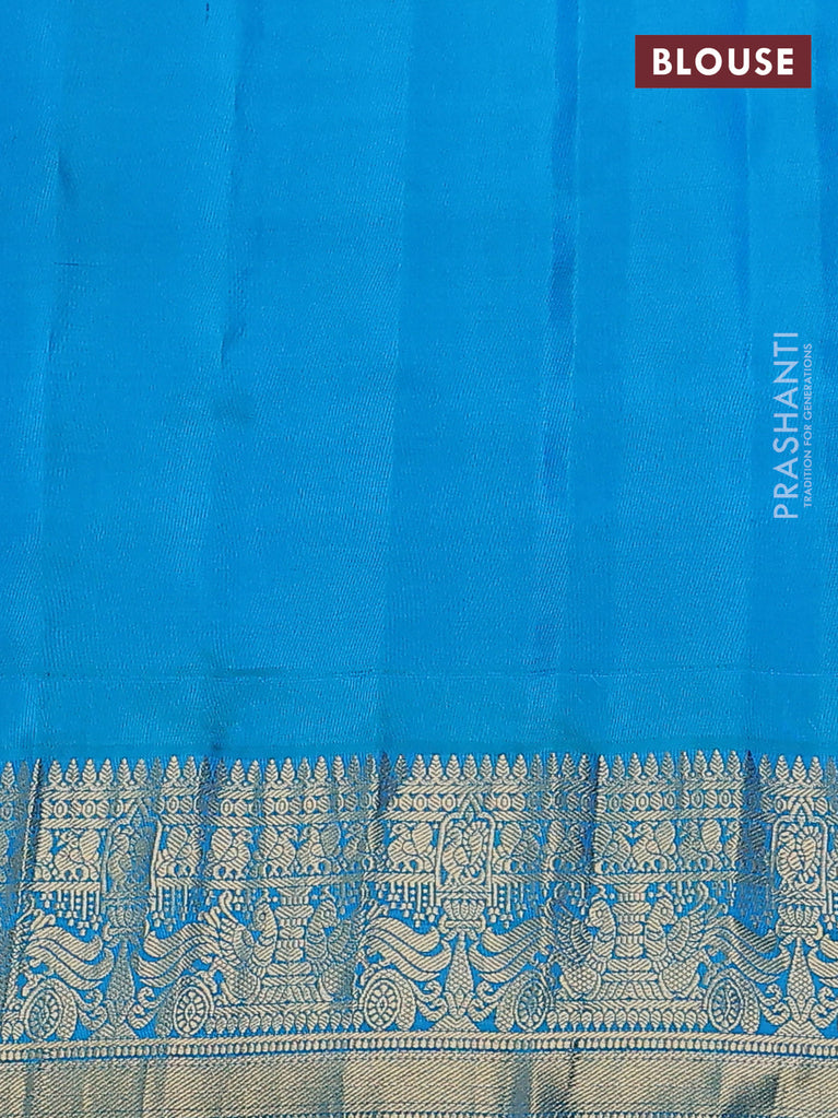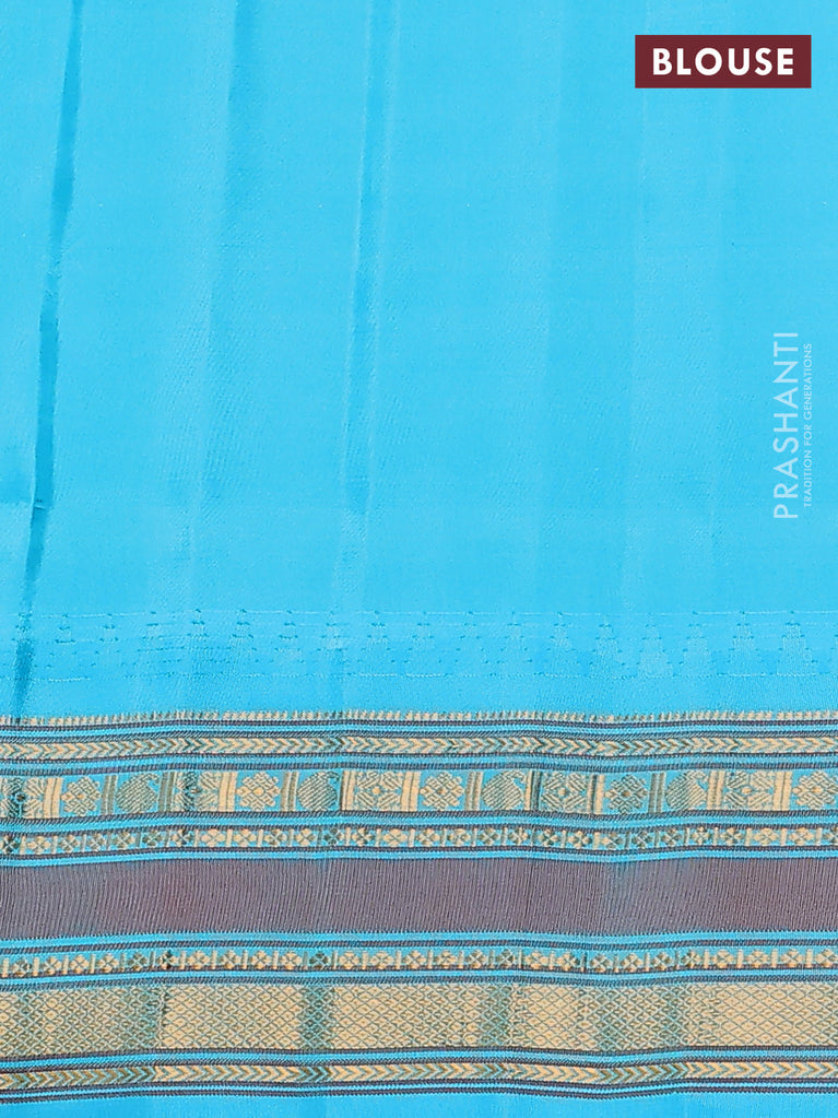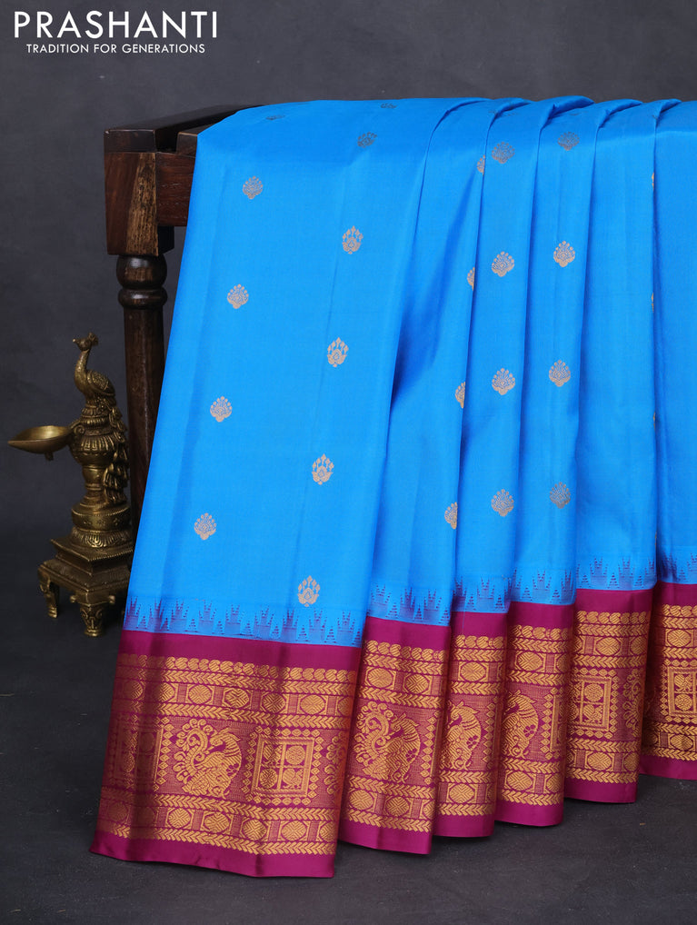 Pure gadwal silk saree blue and lavender with zari woven buttas and temple design zari woven border