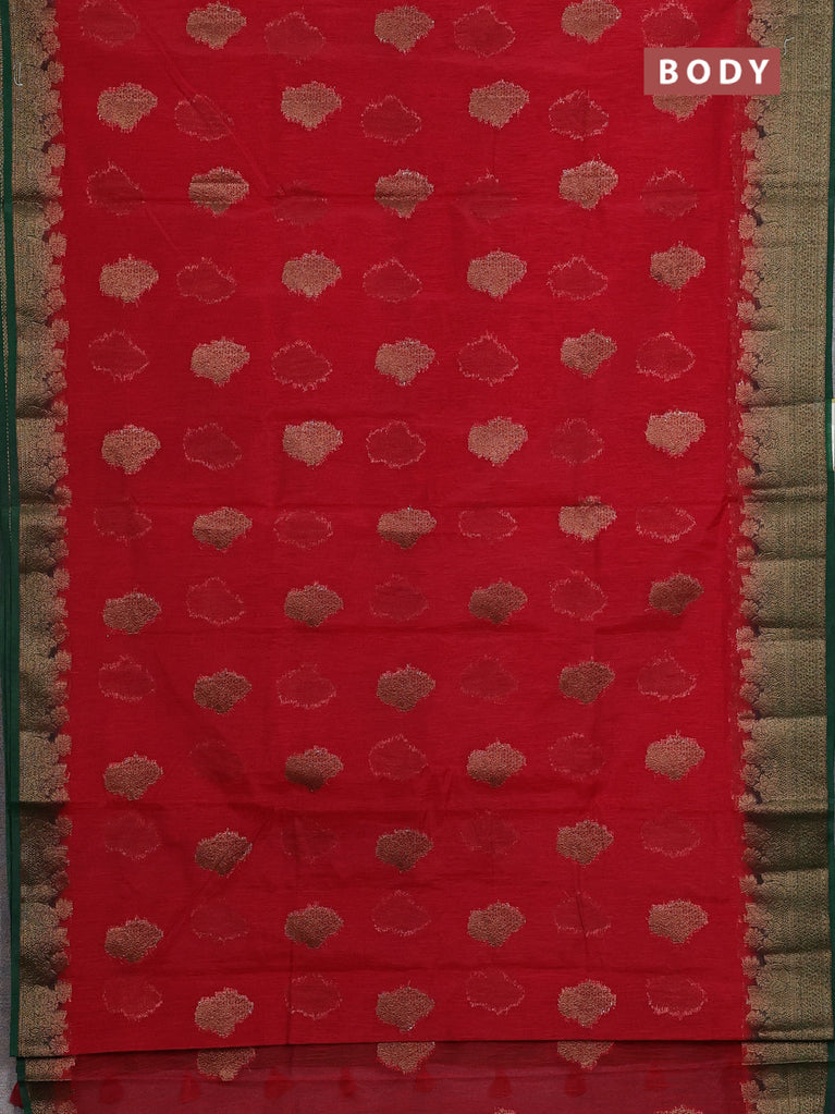 Banarasi semi matka saree red and green with thread & zari woven buttas and banarasi style border