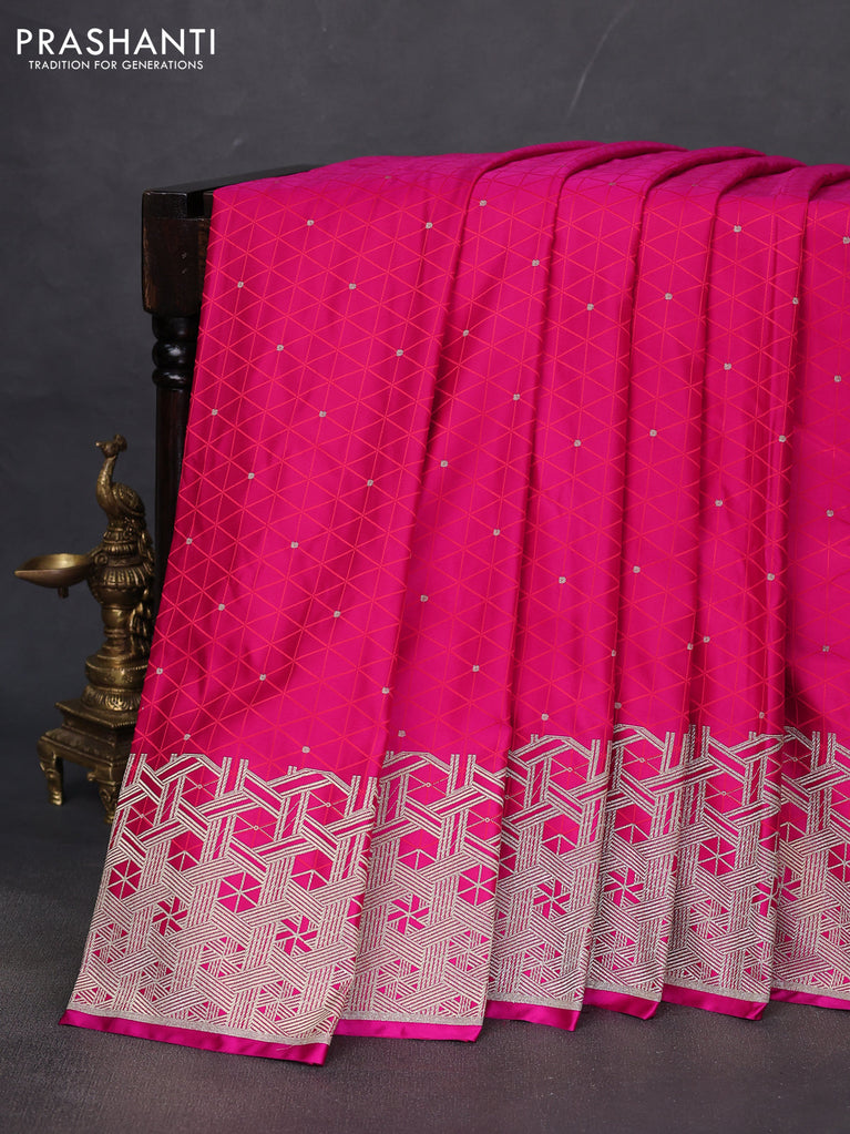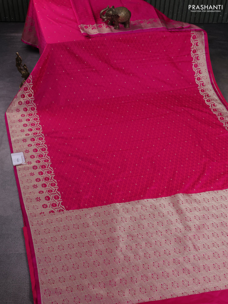 Banarasi semi mushru silk saree pink shade with allover self emboss & zari buttas and rettapet zari woven border