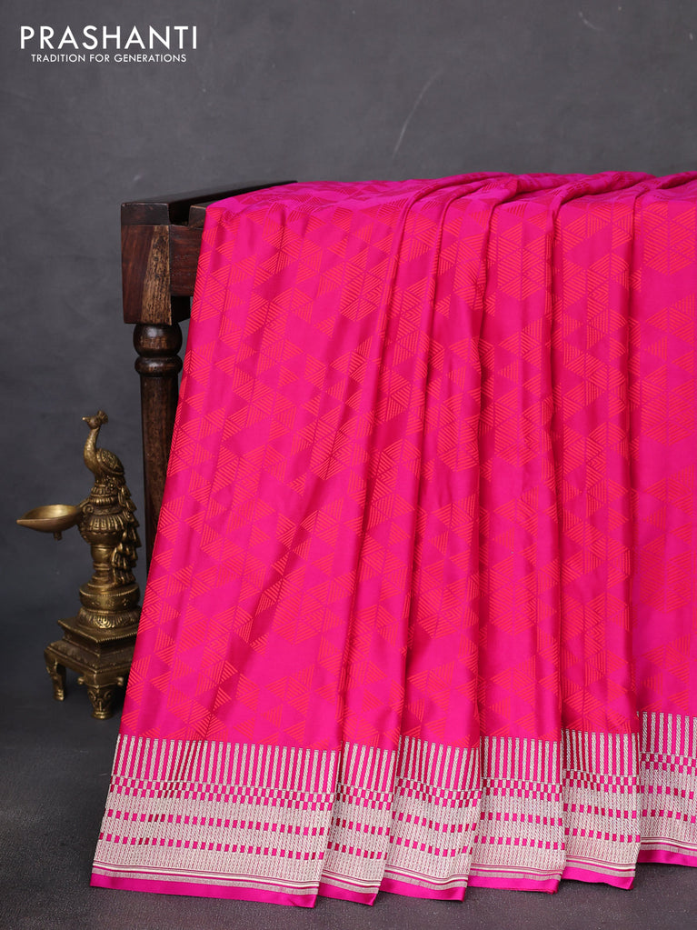 Banarasi semi mushru silk saree pink with allover zig zag zari weaves and zari woven border