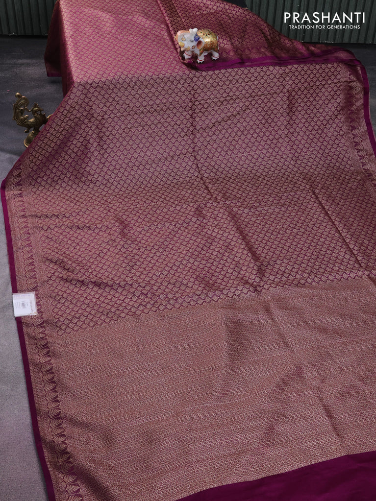 Banarasi semi silk saree deep purple with allover thread & zari weaves and woven border