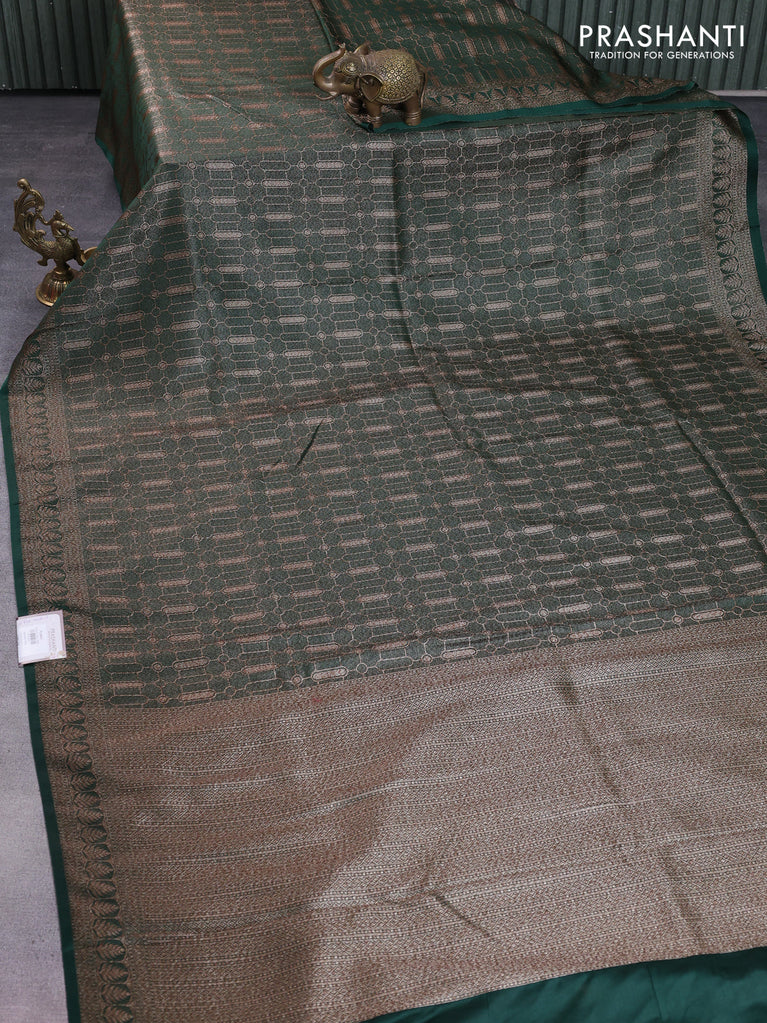Banarasi semi silk saree green with allover thread & zari weaves and woven border