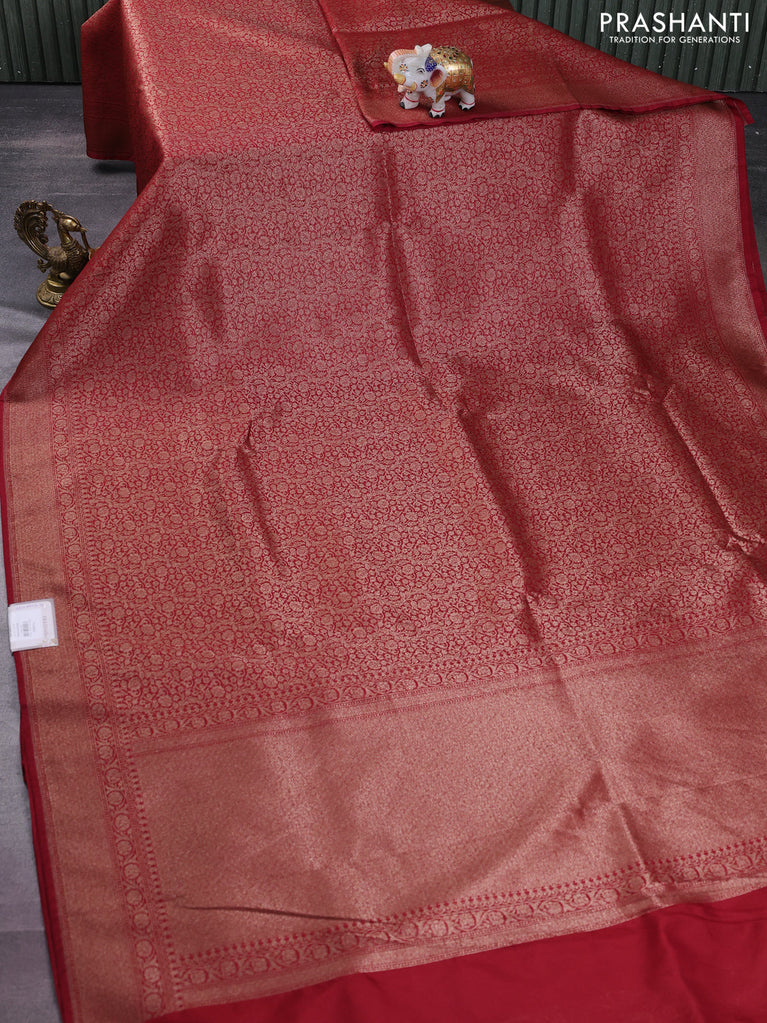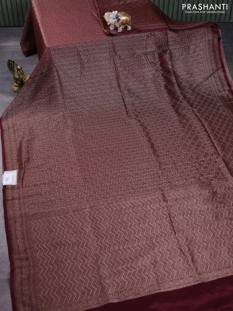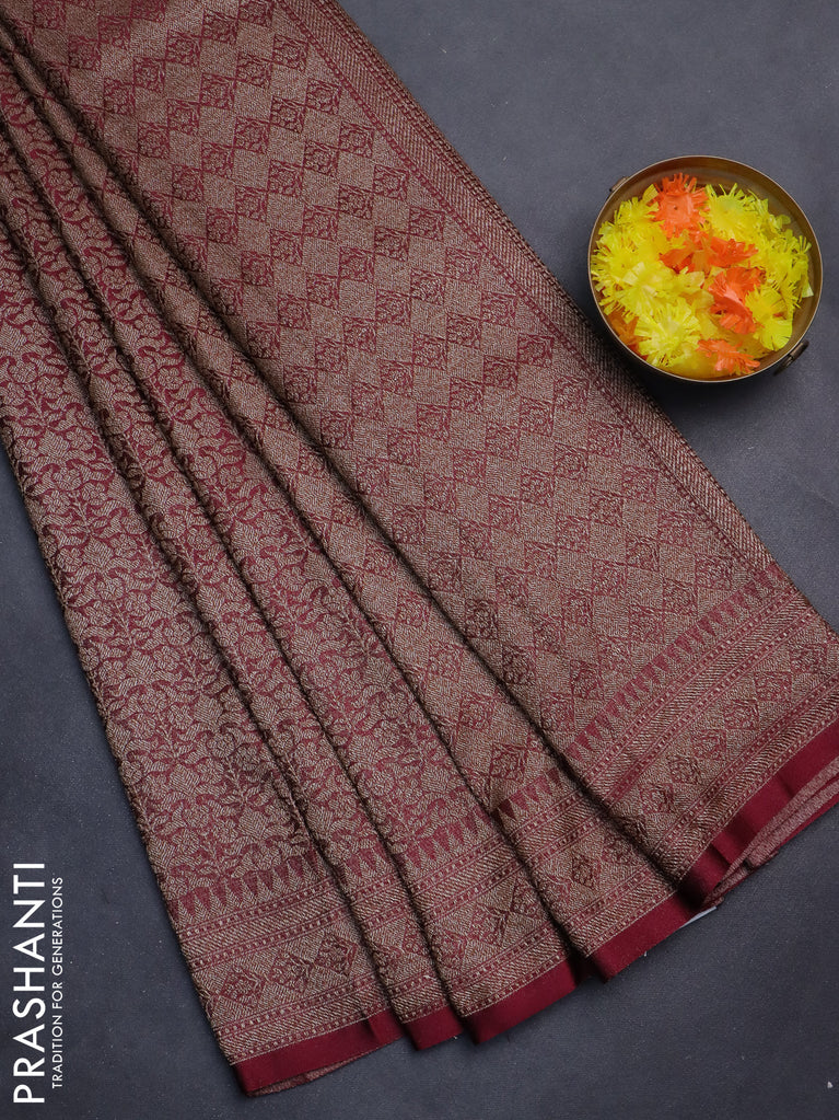 Banarasi semi silk saree maroon with allover thread & zari weaves and woven border