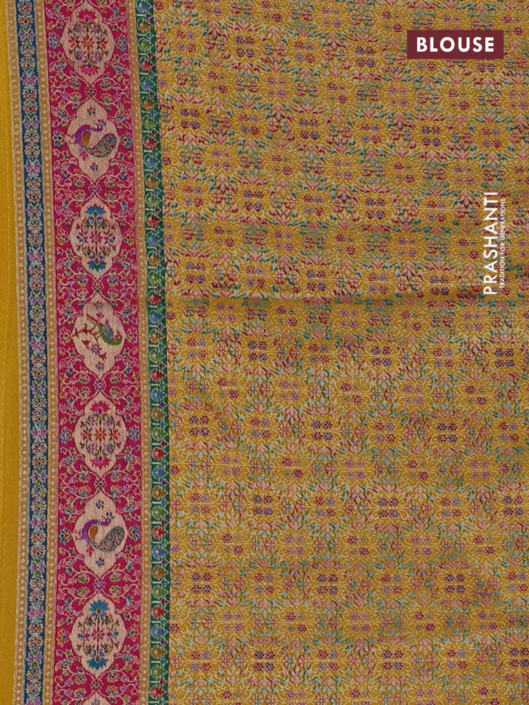 Banarasi silk saree mustard yellow and violet with allover zari weaves and zari woven border