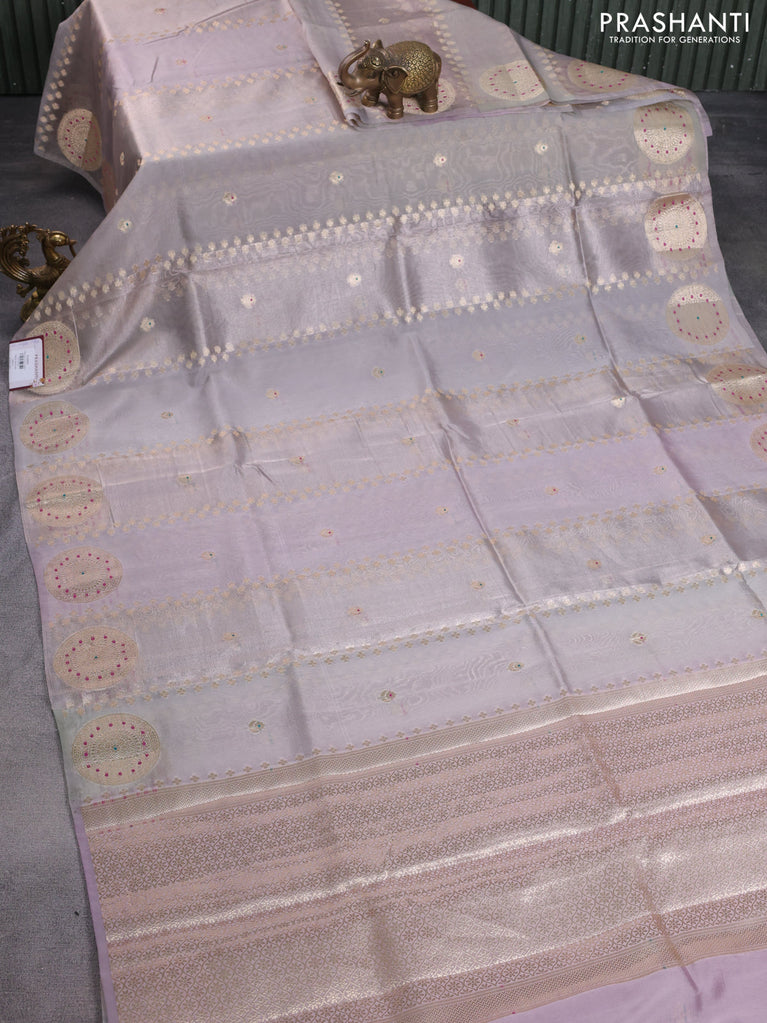 Banarasi tissue semi silk saree pastel grey and mild lavender with zari weaves & buttas and zari woven butta border