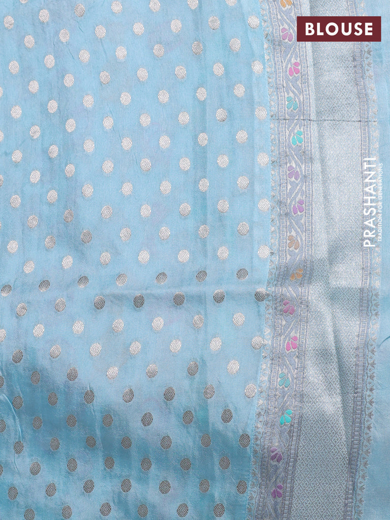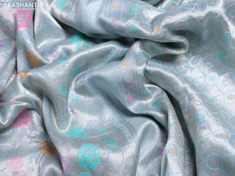 Banarasi tissue silk saree light blue with allover thread woven floral weaves and silver zari woven border