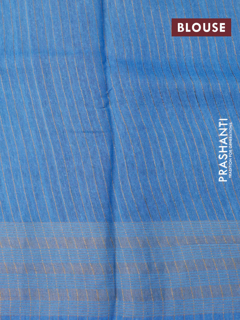 Banarasi tussar silk saree blue shade with plain body and printed pallu