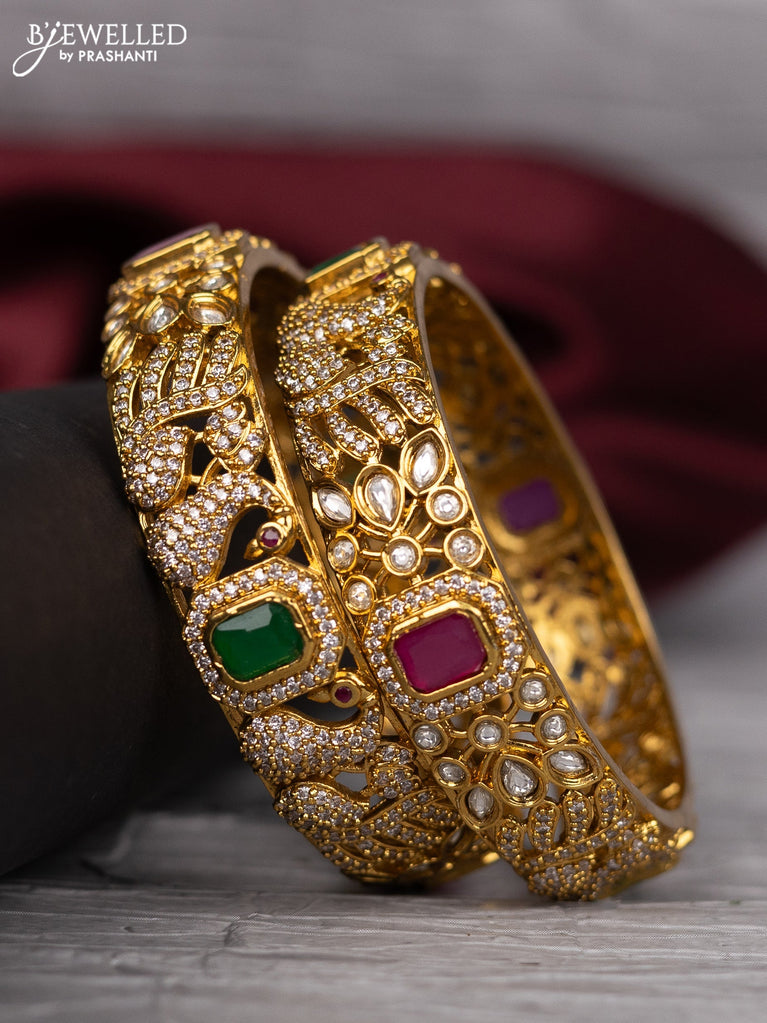 Antique bangle peacock design with kemp & cz and kundan stones
