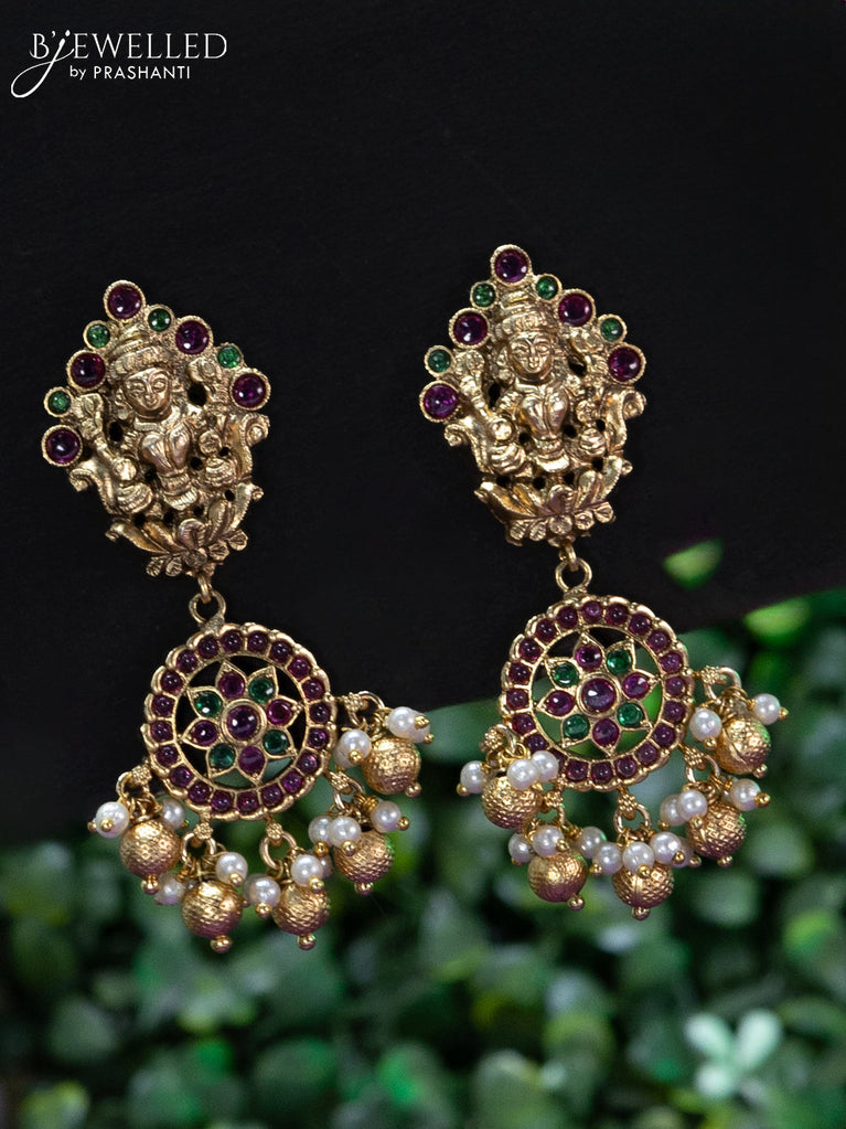 Black thread necklace lakshmi design with kemp stones and pearl & beads hanging