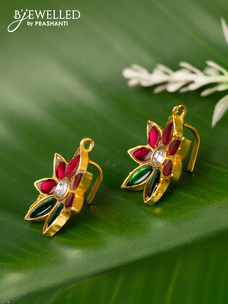 Bugadi earrings floral design with jadau kundan stones