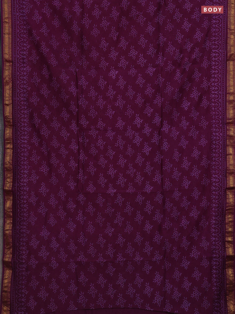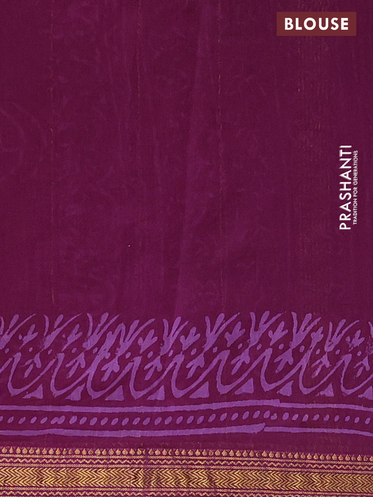 Chanderi bagru saree violet with floral butta prints and long printed zari border
