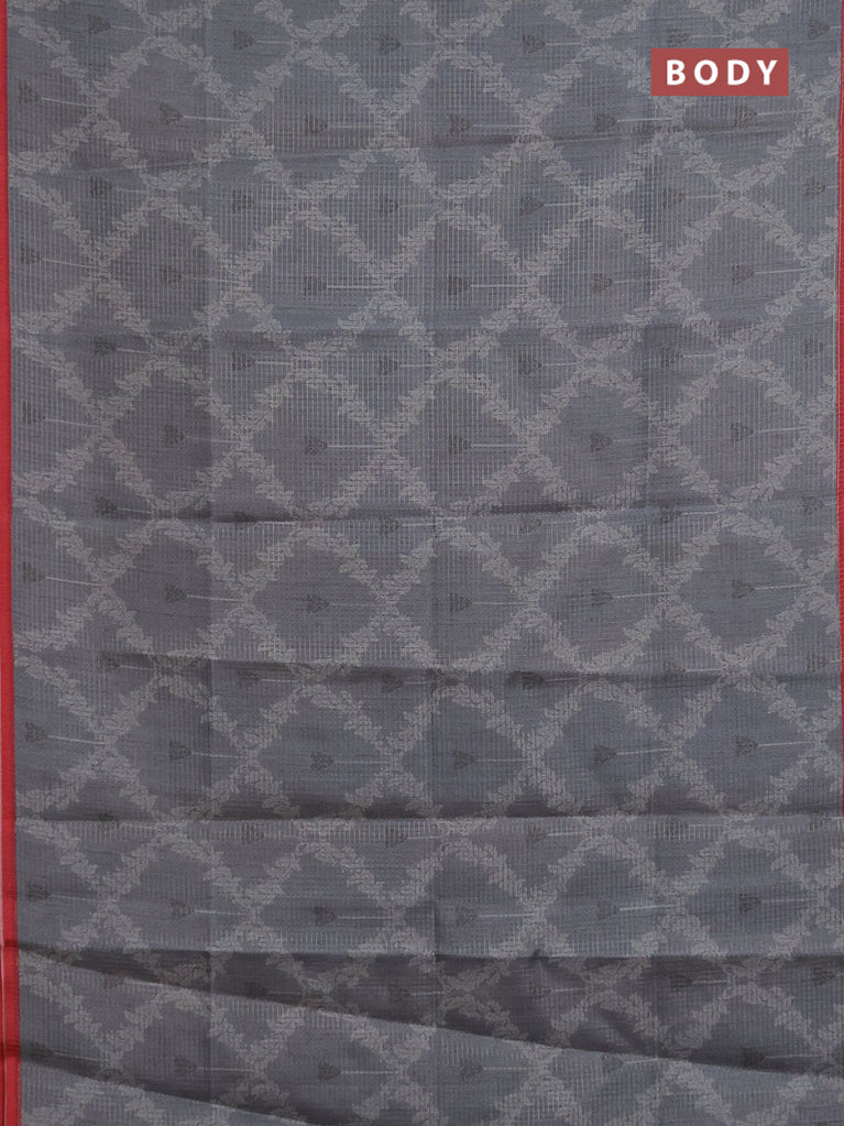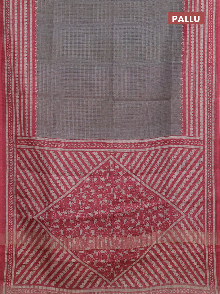 Chappa saree grey and maroon with allover small zari checked pattern & prints and piping border