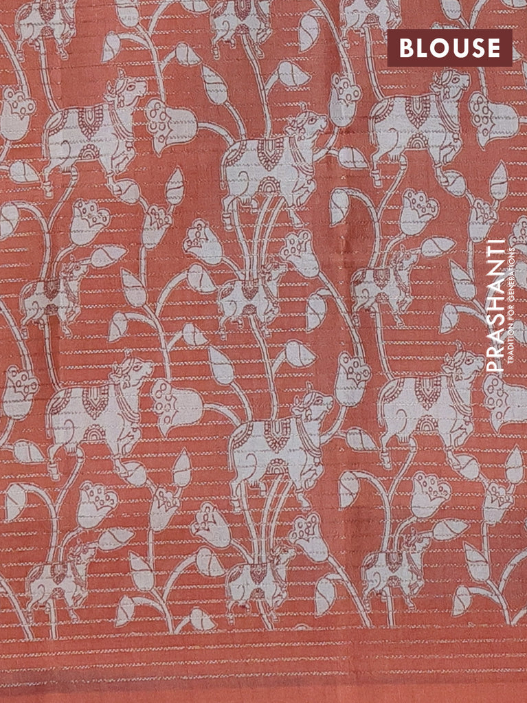 Chappa saree light blue and rust shade with allover small zari checked pattern and pichwai printed pallu