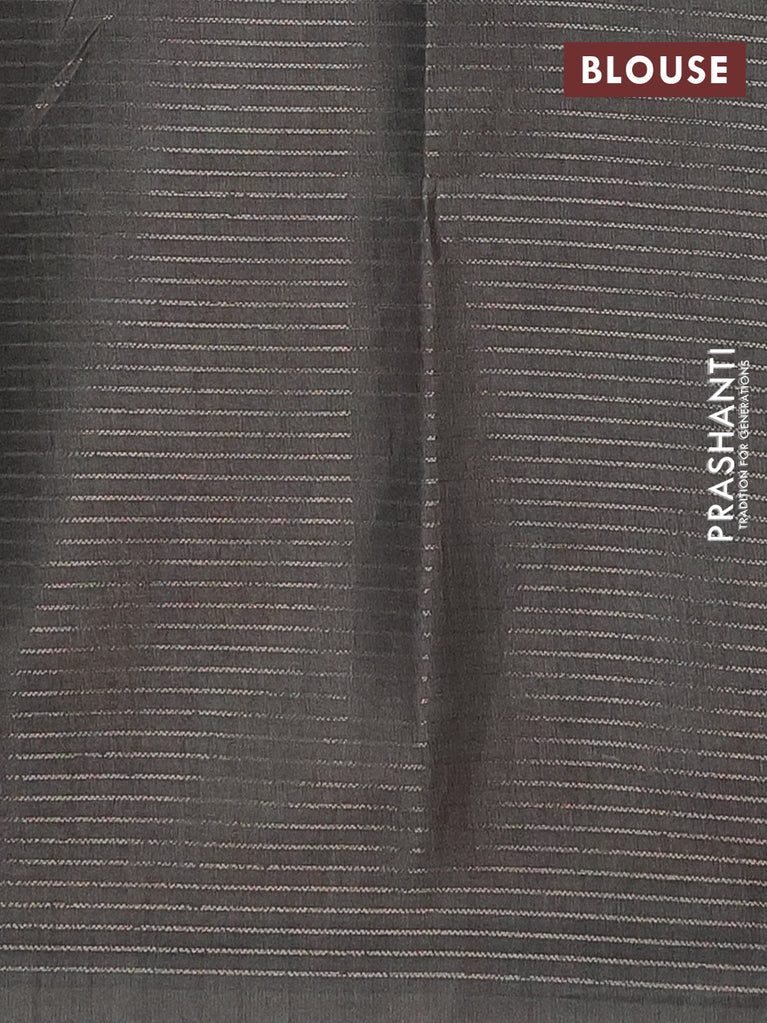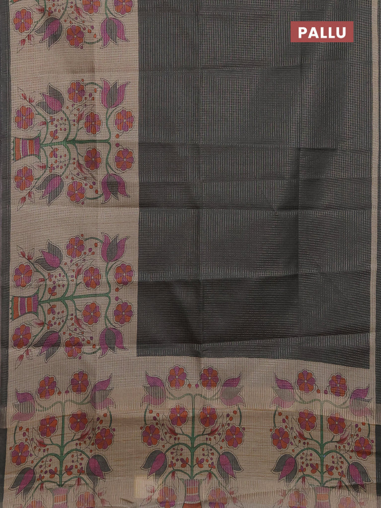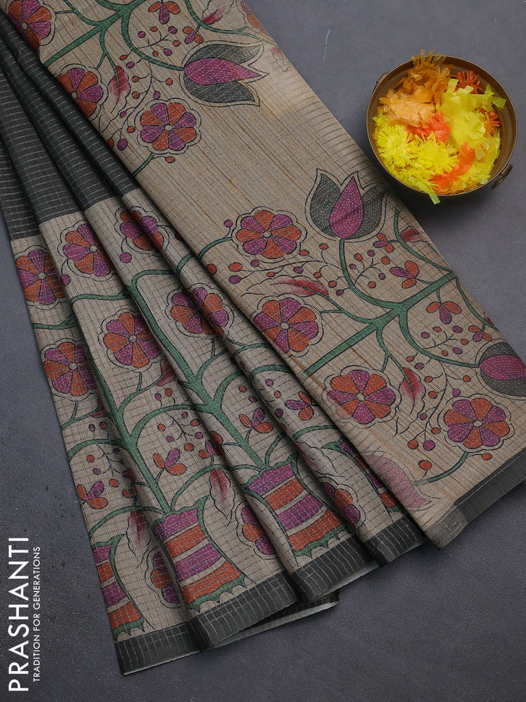 Chappa saree grey and black with allover small zari checked pattern & floral digital prints and ganga jamuna border