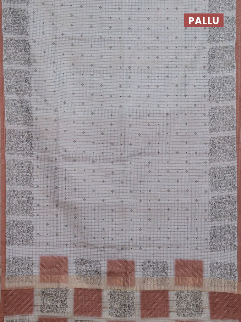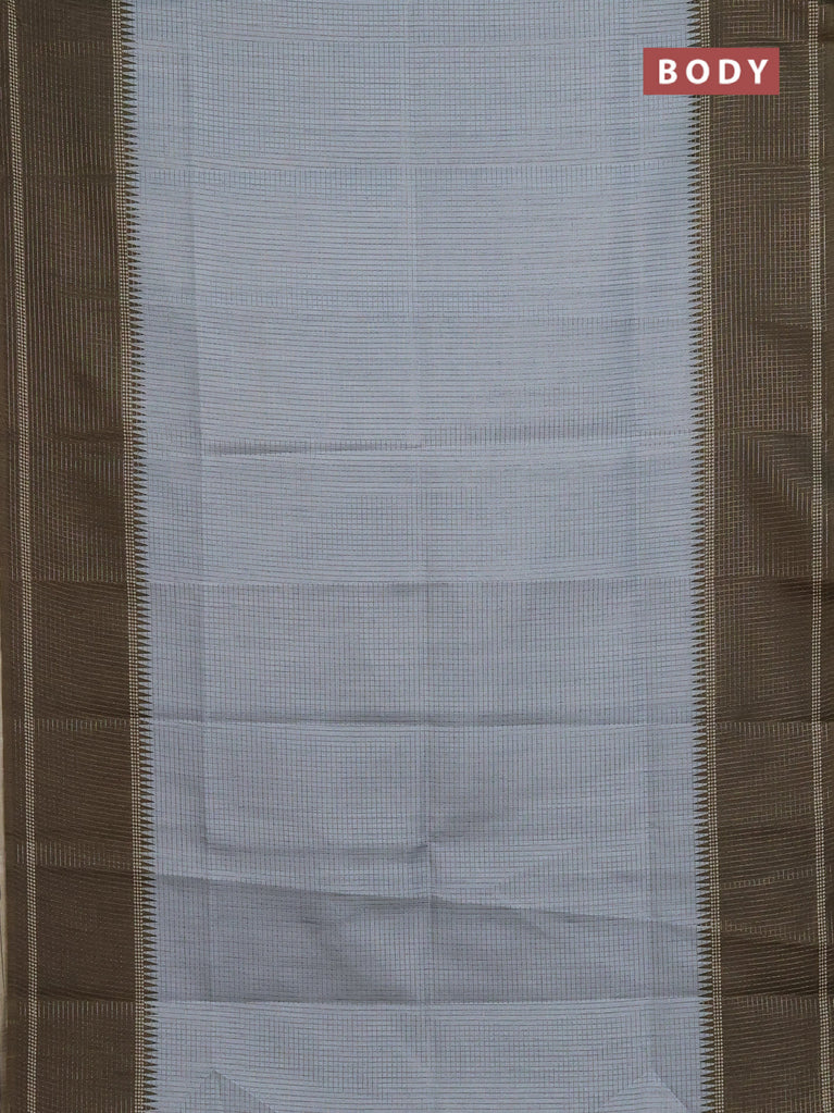 Chappa saree pastel grey and brown with allover small zari checked pattern & butta prints and printed border