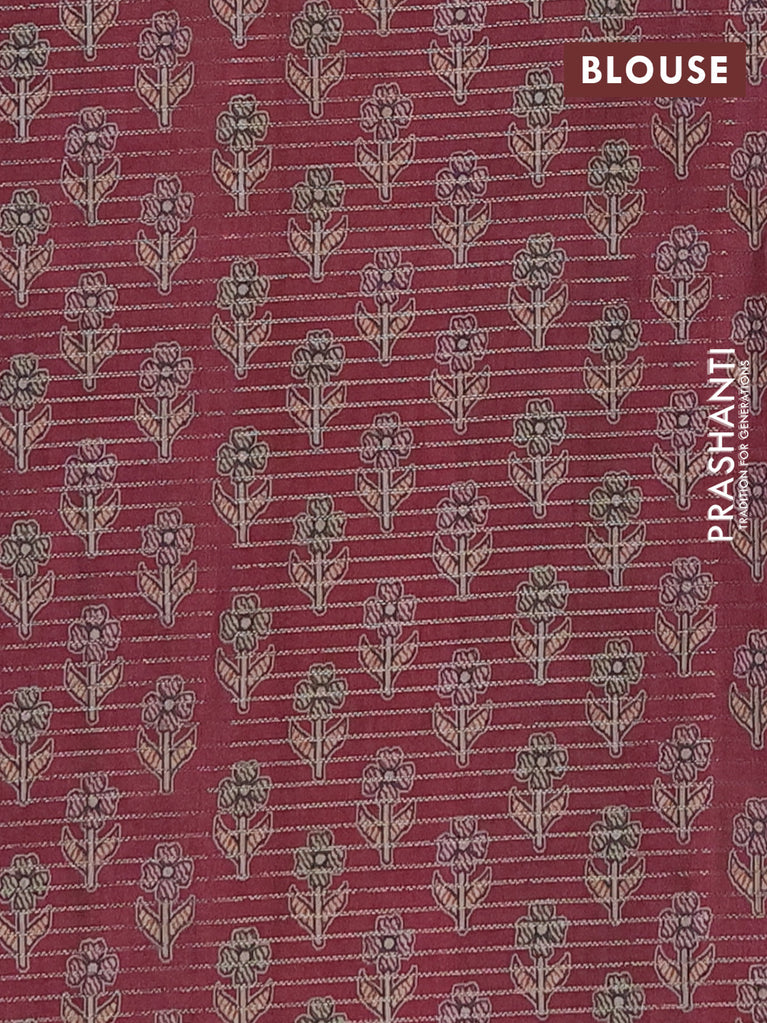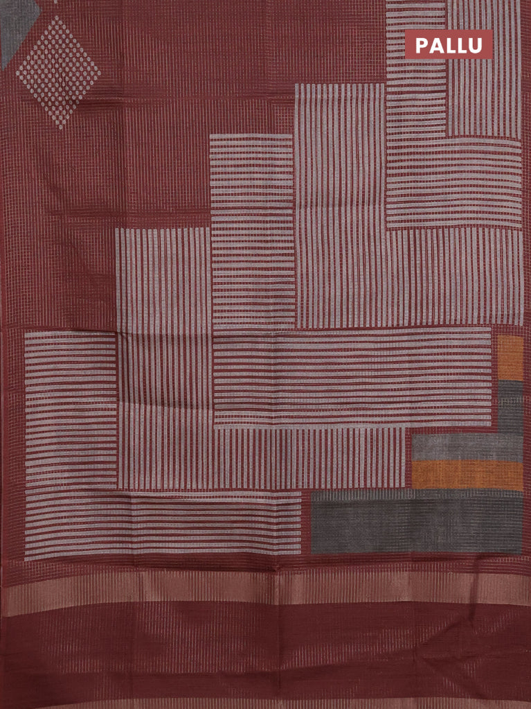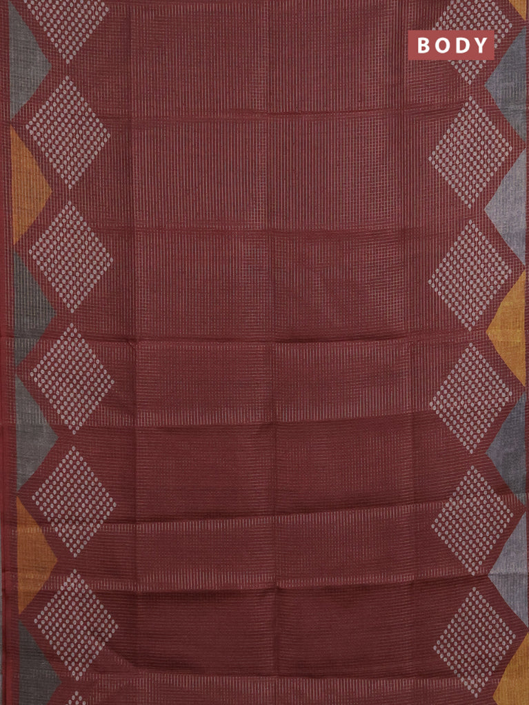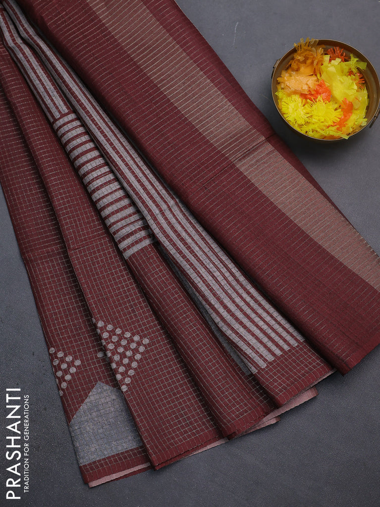 Chappa saree maroon and grey with allover small zari checked pattern and printed border