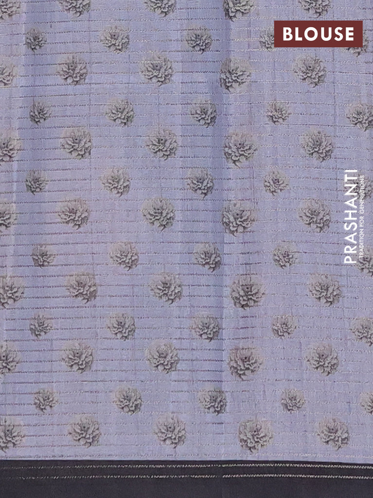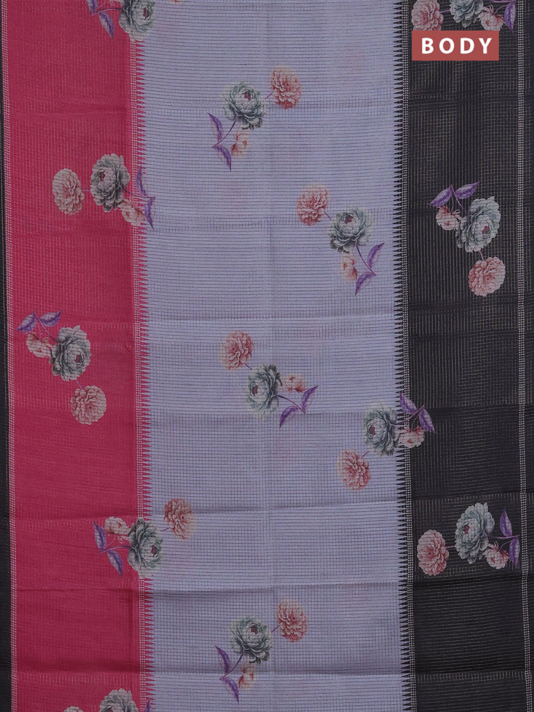 Chappa saree pastel grey and black with allover small zari checked pattern & floral digital prints and ganga jamuna border