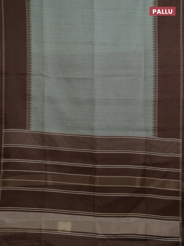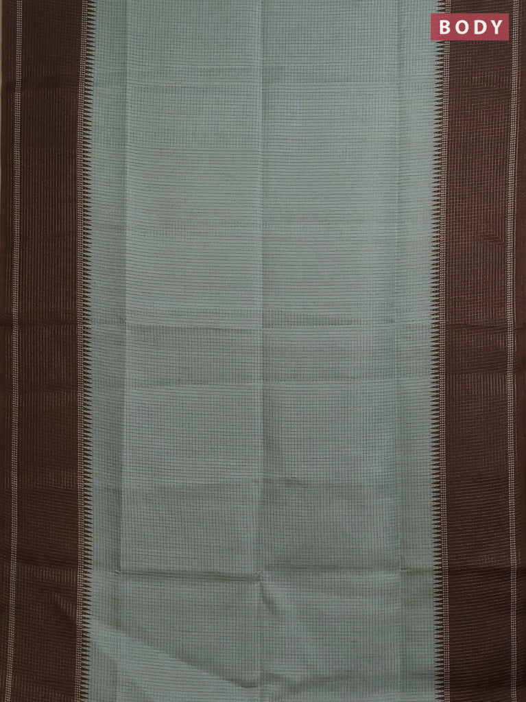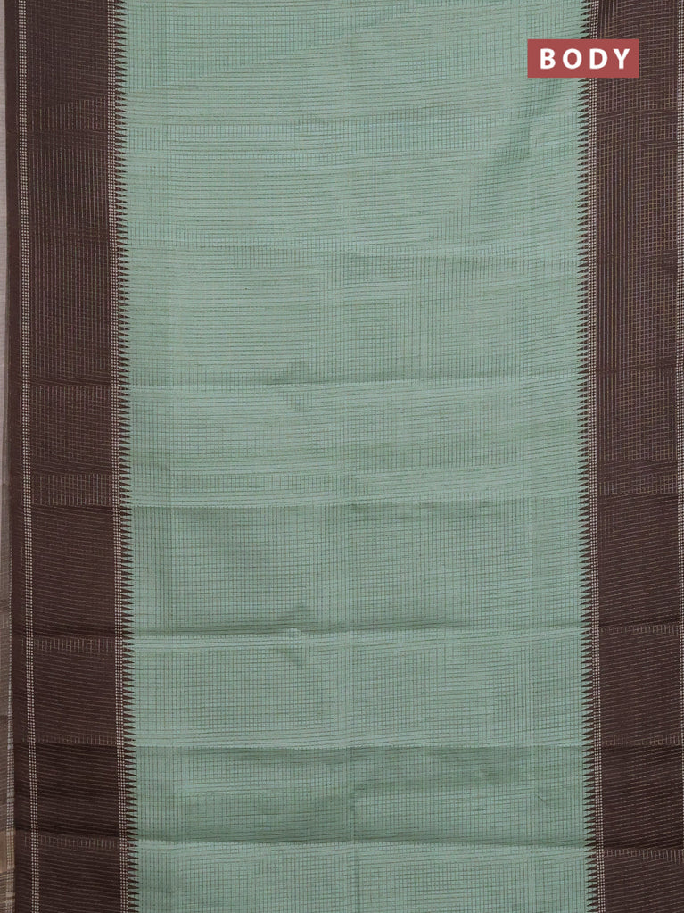 Chappa saree pastel green and brown with allover small zari checked pattern and temple design zari woven border