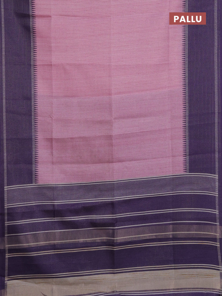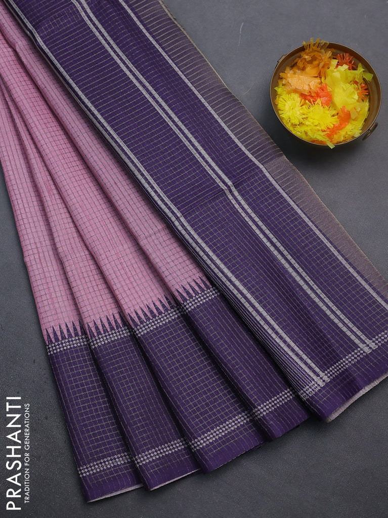 Chappa saree light pink and violet with allover small zari checked pattern and temple design zari woven border