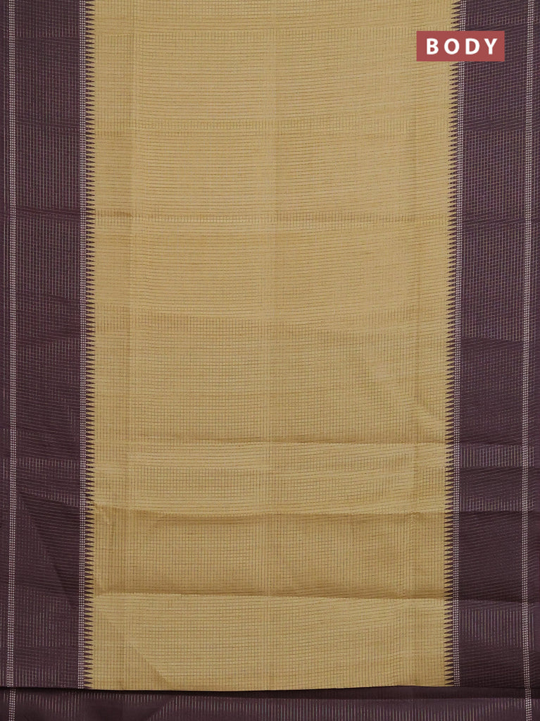 Chappa saree pale yellow and deep wine shade with allover small zari checked pattern and temple design zari woven border