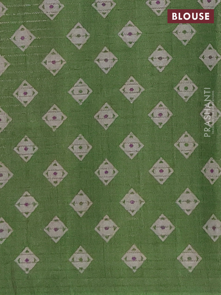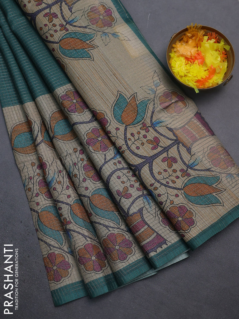Chappa saree peacock green and beige with allover small zari checked pattern and floral digital printed pallu