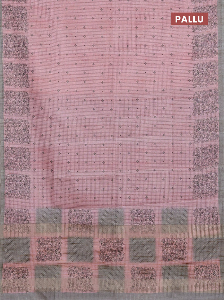 Chappa saree peach pink and grey with allover small zari checked pattern & butta prints and printed border