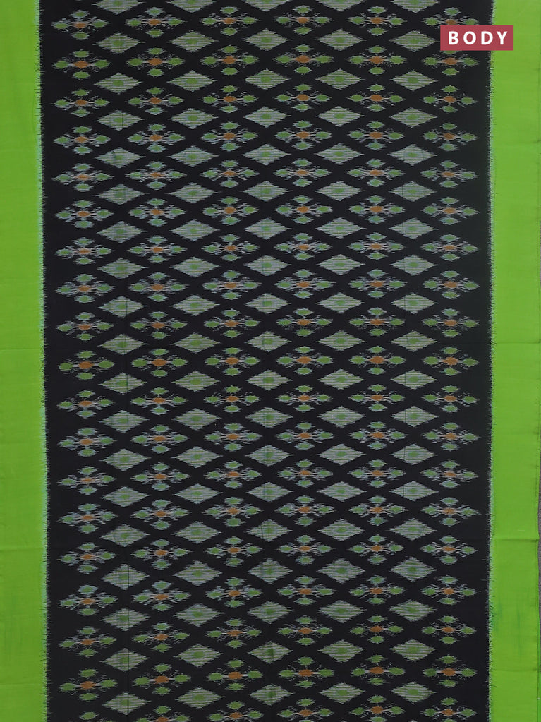 Ikat cotton saree black and green with allover ikat butta weaves and simple border