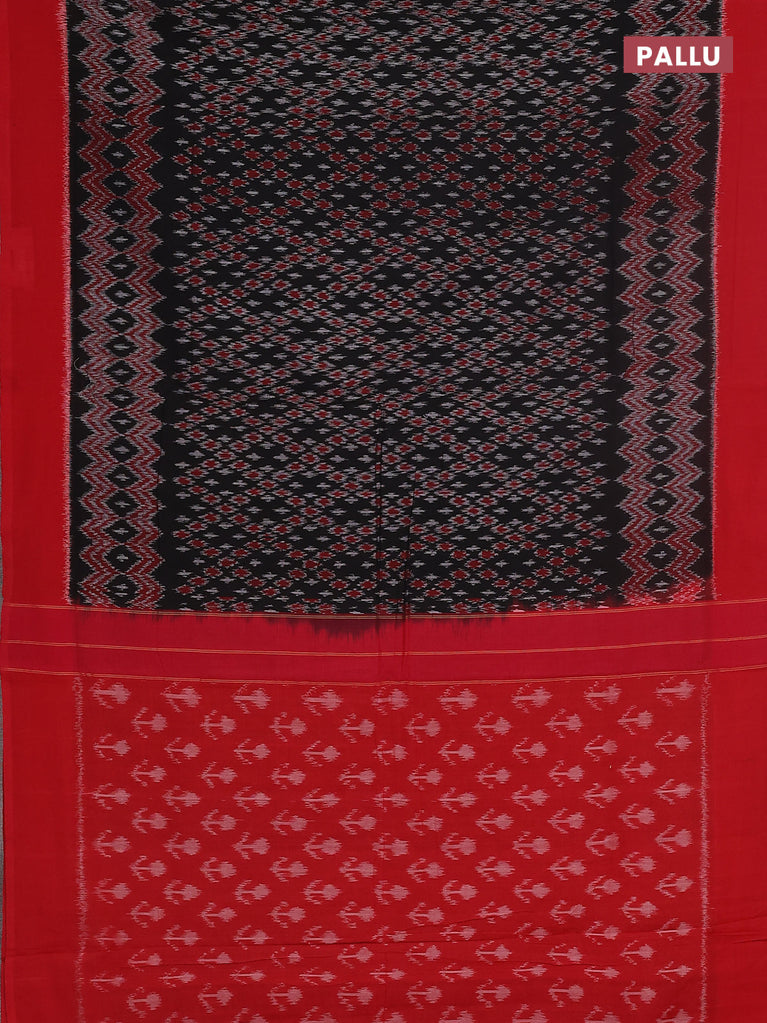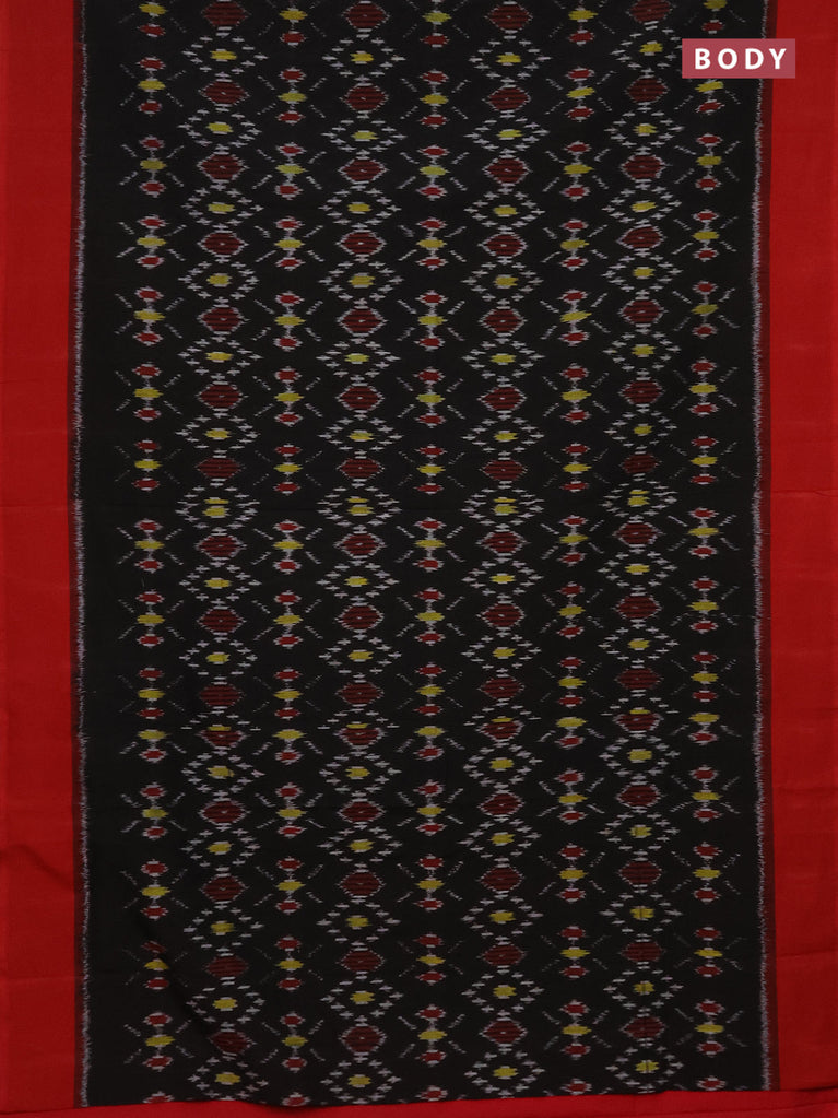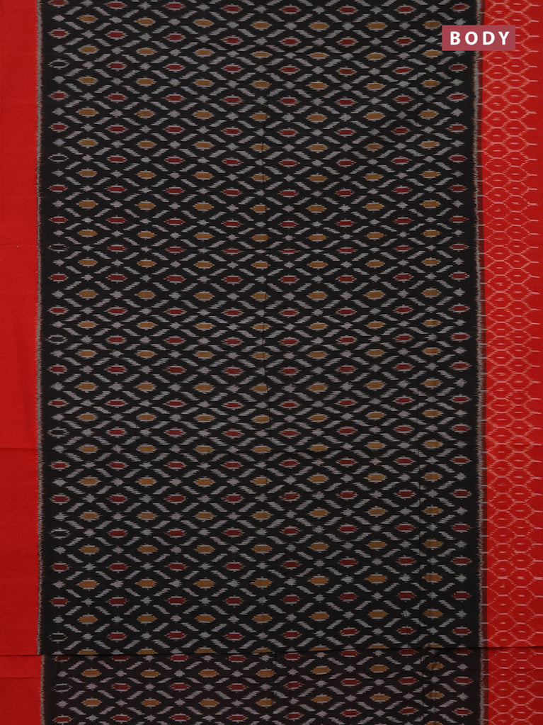 Ikat cotton saree black and red with allover ikat weaves and simple border